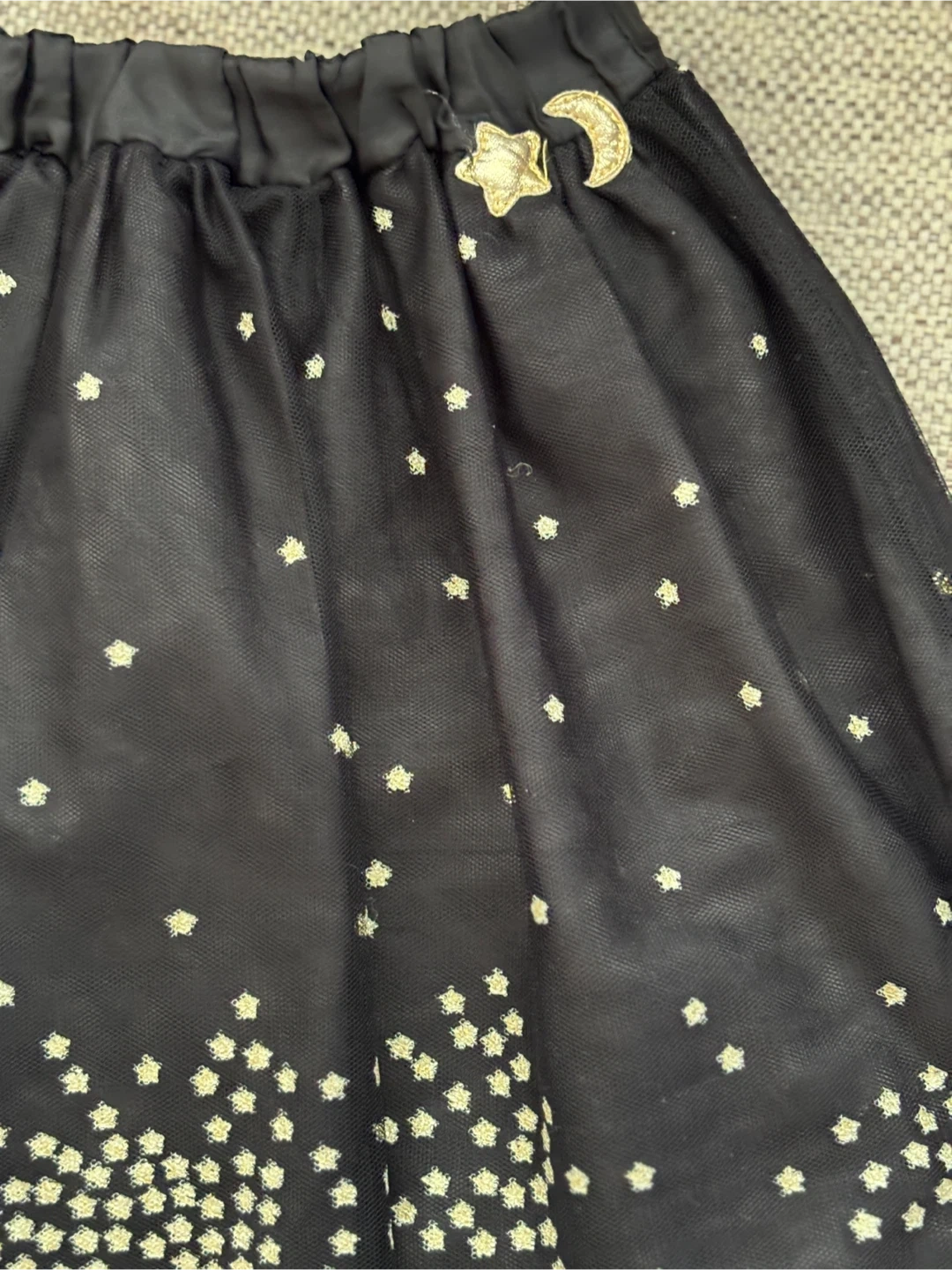 キッズのスカートです。 ・色:ブラック ・サイズ:130 ・星柄のデザイン ・ウエストはゴム ・スカートの裾に星の刺繍 おまとめの場合多少お値引き出来ますので お気軽にお声掛けください。 ご不明点があればお気軽にお尋ねください。