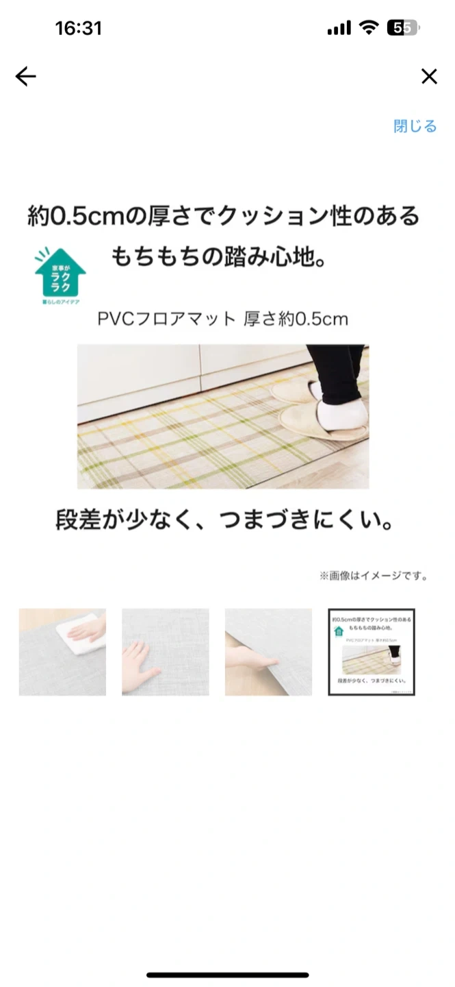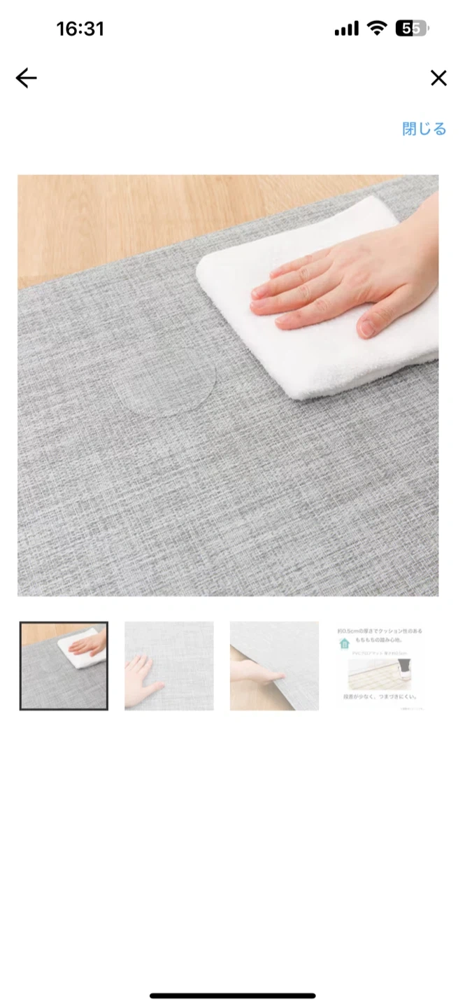 ニトリ 拭けるキッチン用マットです! ・色:グレー ・床暖房でも使用可能 ・厚さ約0.5cm サイズ 巾45cm 奥行(長さ)240cm 2024年購入 何ヶ月か使用していました。 洗えない為、キレイに拭いて保管していました。 特にシミや切れているところなどはありませんが 中古品であることをご理解の上、ご購入お願いいたしますm(__)m