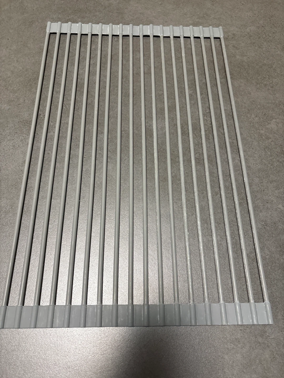 キッチンの水切りラックです。 ・色:グレー ・状態:使用感はそれなりにあります 出しっぱなしだったので水垢付いてます 他のを購入しましたので不要になりました つかわない時は丸めて仕舞えます 長さ約53cm 必要な方どうぞ ご不明点があればお気軽にお尋ねください。