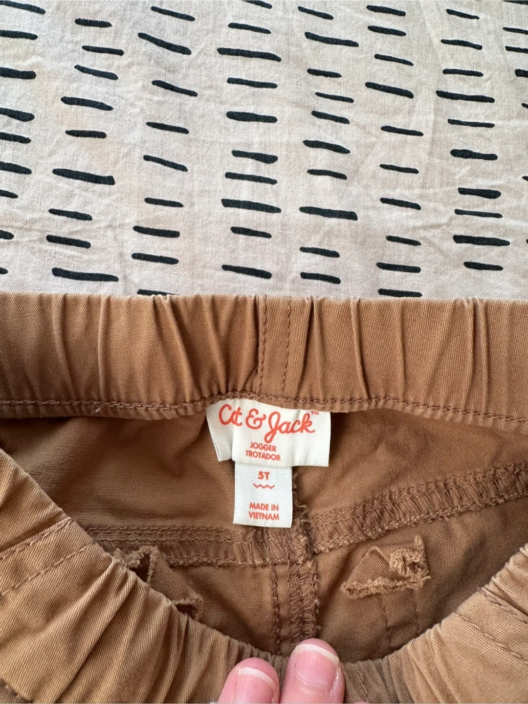 キャットアンドジャックのジョガーパンツです。 ・ブランド:キャットアンドジャック ・サイズ:5T ・カラー:茶色、グレー 中古品であることをご了承ください。
