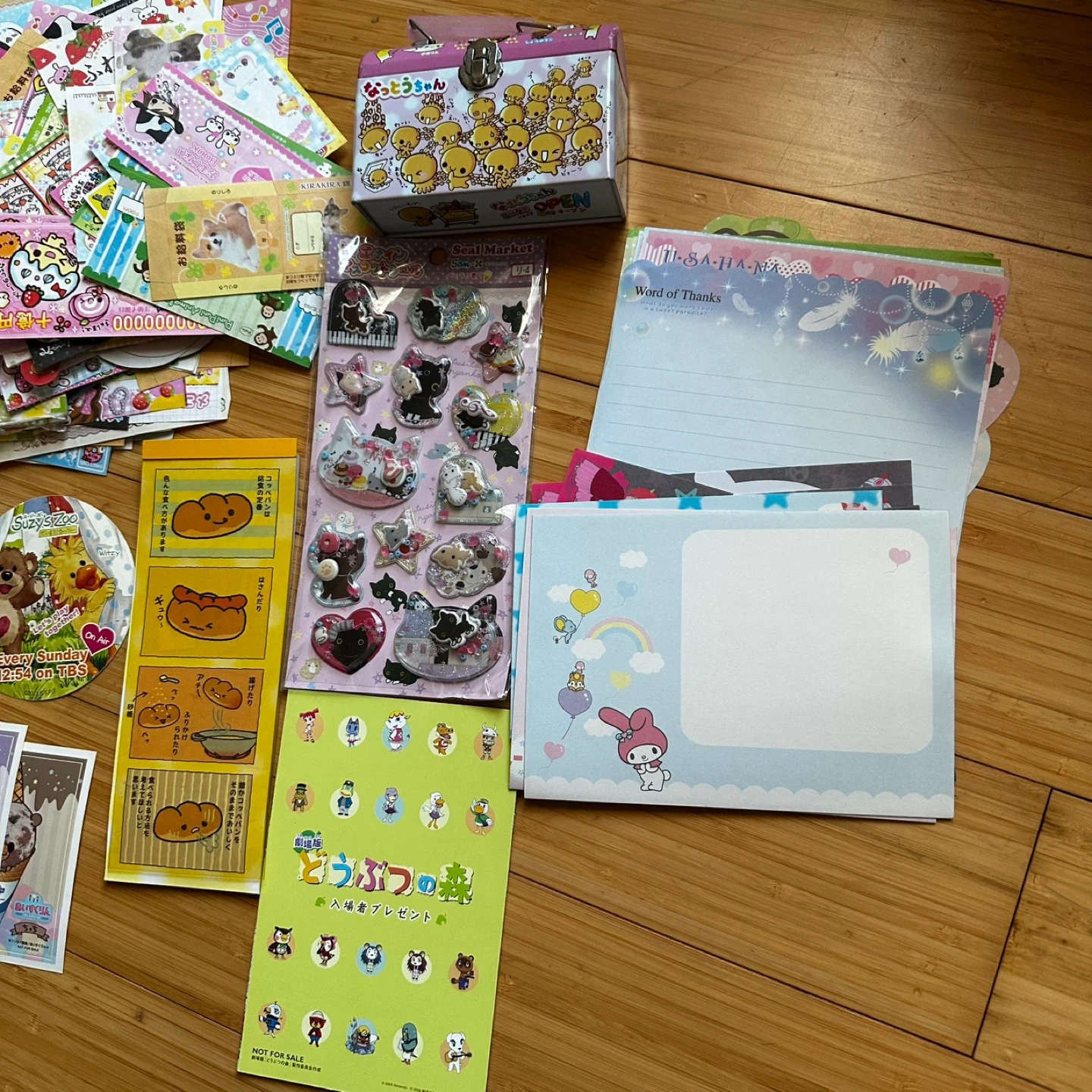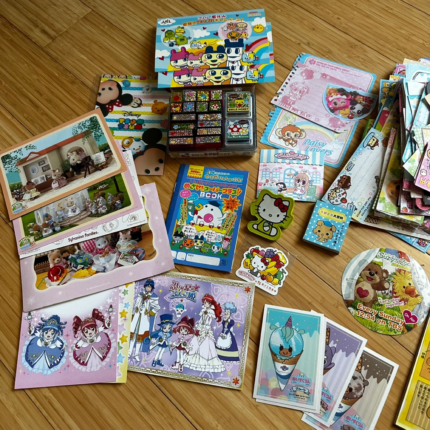 平成キャラクターの文房具セットです。 なっとうちゃんの缶ケース シール ・靴下にゃんこ エアインマスコット(7年以上前に購入してるので、粘着不明) ・あいすくりん×BLUE SEAL ・スージーズー(PLAZAで昔頂いたもの) ・ハローキティ×果汁工房果琳(おまけです) ハローキティ クリップ(たしかハッピーセットか何か) スタンプ(インク乾いてると思いますが、スタンプは使えます。) メモ帳 ・メモ帳交換で集めたもの(100枚以上) →きらレボなどちゃお付録もあります ・パンくんち ・ちびまる レターセット ・まめゴマ ・マイメロ など ポストカード ・劇場版どうぶつの森 入場特典 ・ふしぎ星のふたご姫 ・シルバニアファミリー ・ツムツム ・JAL×たまごっち(羽田空港で押したまめっちのスタンプ付きと無しの2枚セット) 比較的状態が良いものを選んでいますが、そうでないものも混ざっている場合がありますので完全美品をお求めの方はお控えください。 レアな物も含んでるので、高めにしてます。 (各お品物相場みて変更する場合もあります。)