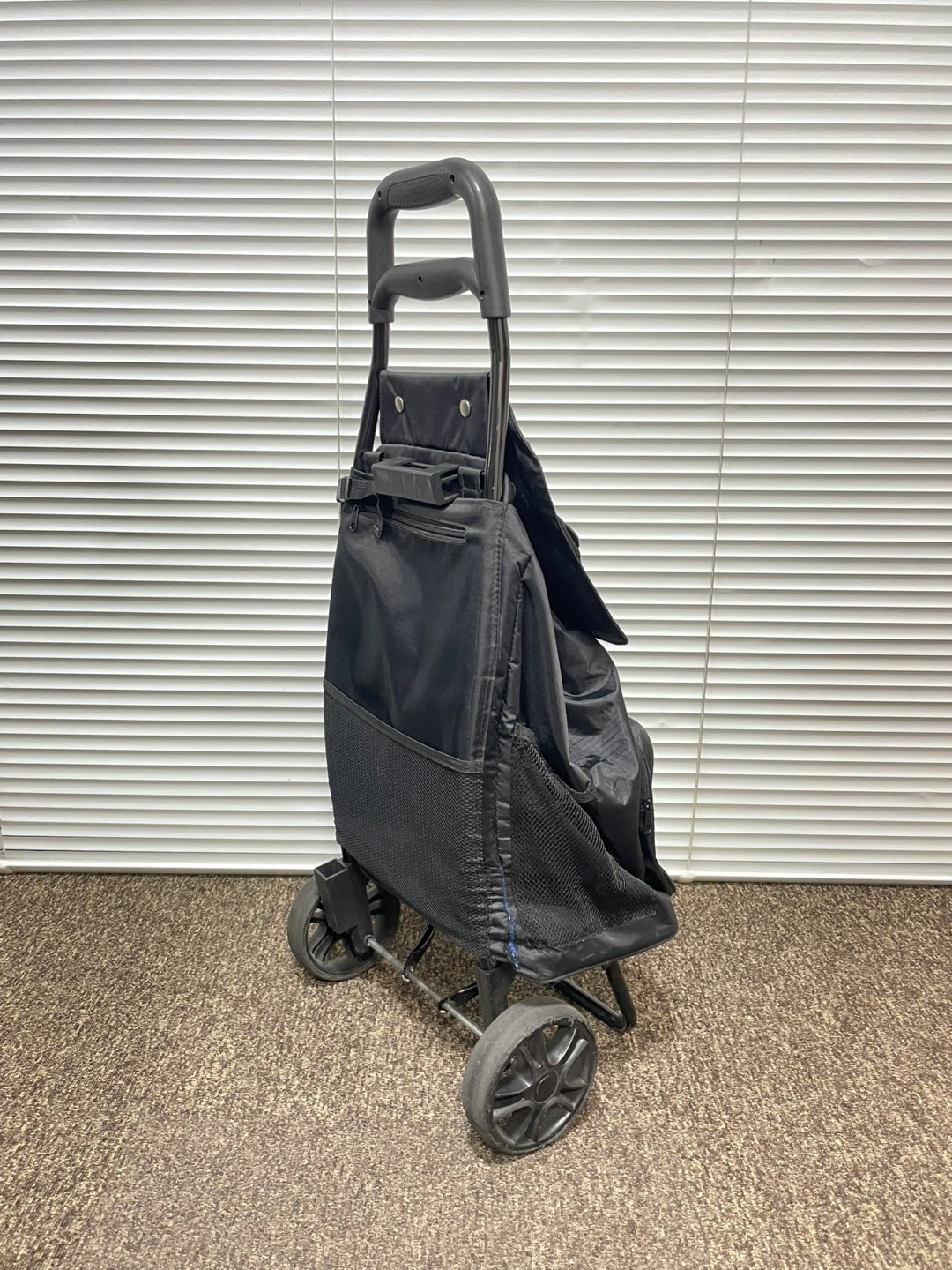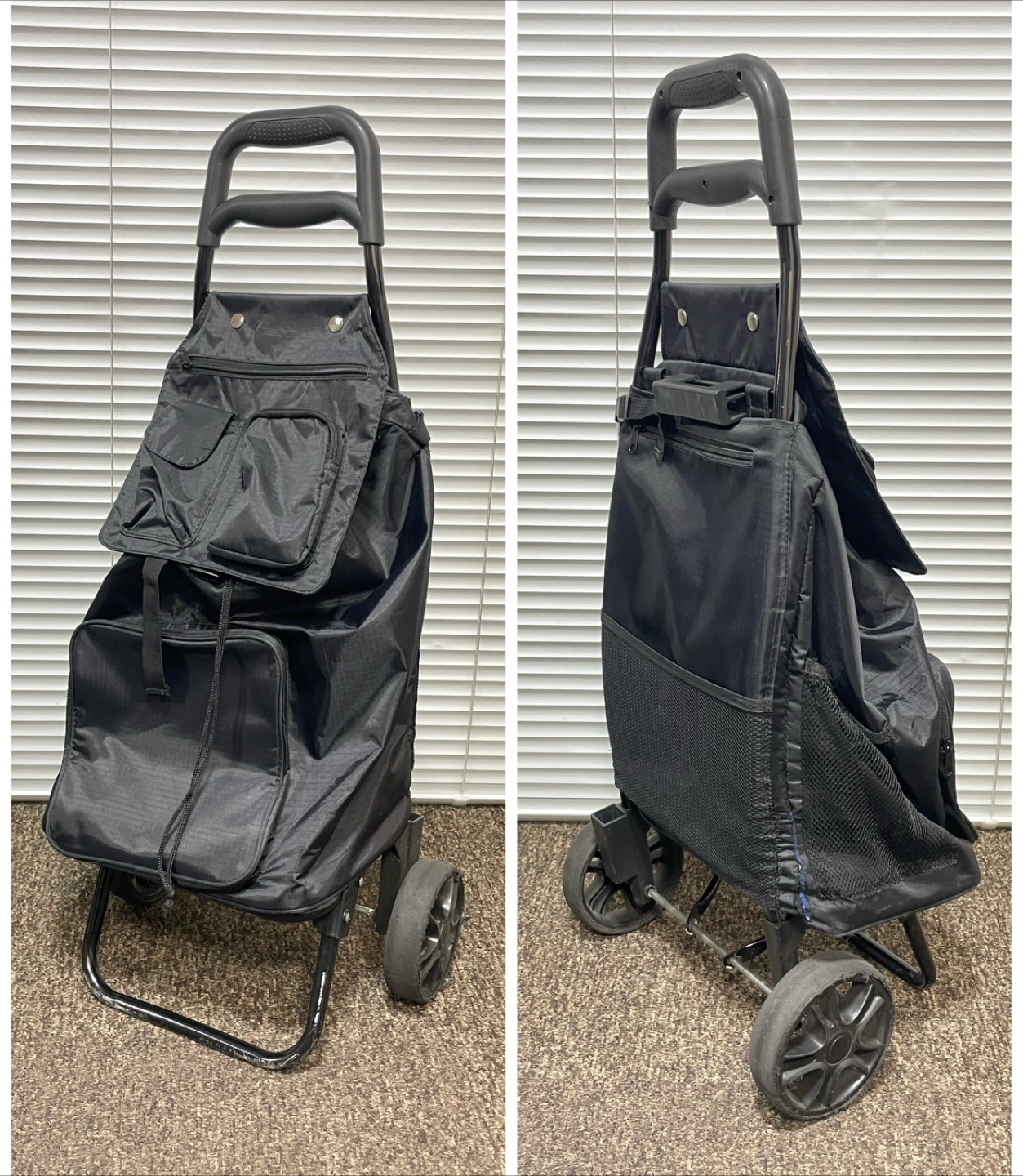 荷物を運ぶ時に重宝するカートです。 バッグ部分は、破れたり、ほつれたりする度にリペアして使っておりました。そのため、補修してある部分があります。 【商品詳細】 サイズ 高さ 87cm 横幅 37cm (タイヤ←→タイヤ) 奥行 28cm 【状態】 ①バック内側の保冷効果のあるインナーが破れてしまっております。 ②フロントカバーを留めておくための、サイドリリースバックルのオスがありません。合致するものがあればカバーがパチっと留まります。