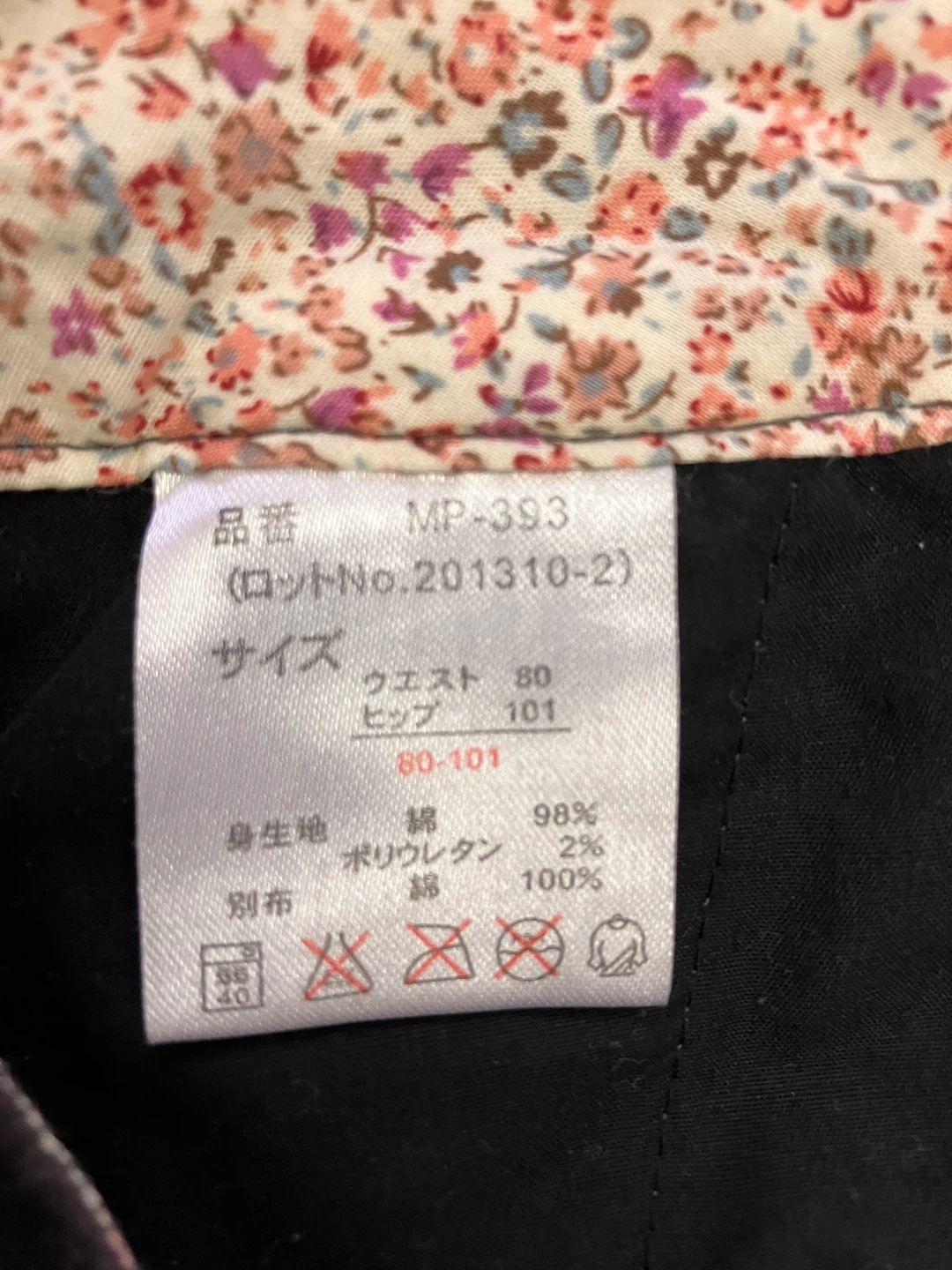 ストンとしたシルエットの紺色のコーディロイキュロットパンツです 生地もしっかりしていて、裏地の小花模様も可愛い 細畝です カラータイツとか合わせても可愛いと思ってネット購入しましたが、サイズが合わなくて、、、です ・色:ネイビー ・サイズ:ウエスト80cm、ヒップ101cm ・素材:綿98%、ポリウレタン2% ・別布:綿100% ・品番:MP-393 ・ロットNo.201310-2 中古品であることご了承ください