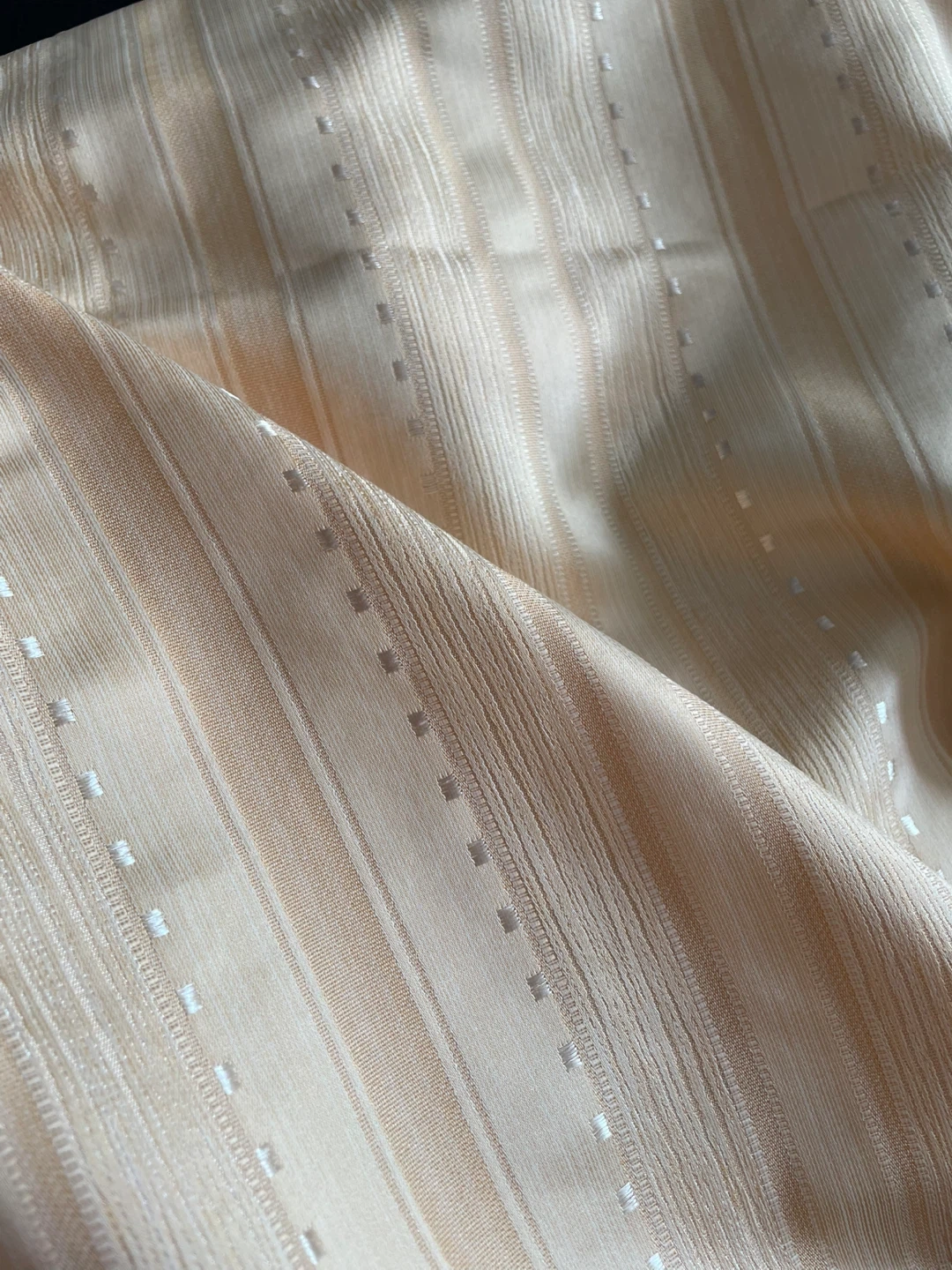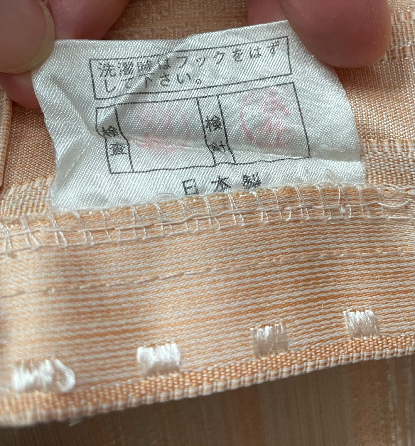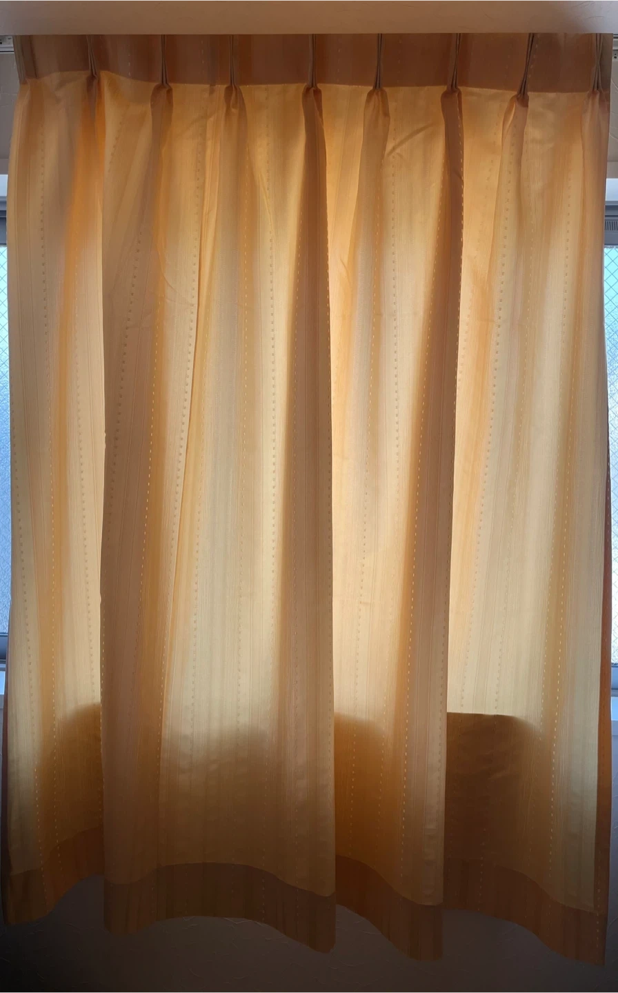 ツヤ感のある優しい色合いのカーテンです。 日本製 サイズ W105×H158cm ×2枚セットです ・色:サテン調オレンジ系 (色味は2枚目が現物に近いです) (ツヤ感は3枚目が参考です) ・模様:ストライプ ・洗濯表示あり ・日本製 洗濯済みです ※中古品であることをご了承ください。