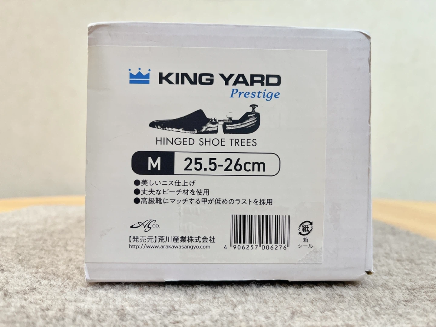 ご覧頂きありがとうございます。 ●ブランド:KING YARD ●品名:キングヤード シューツリー プレステージ ●形式:ヒンジド ●サイズ:M(25.5-26.0cm) ●重さ:左足用 440g 右足用 439g ●発売元:荒川産業株式会社 外箱の一部には破れがありますので予めご了承下さい。ご使用頂ける方へお譲りさせて頂きますのでご検討の程、よろしくお願いします。