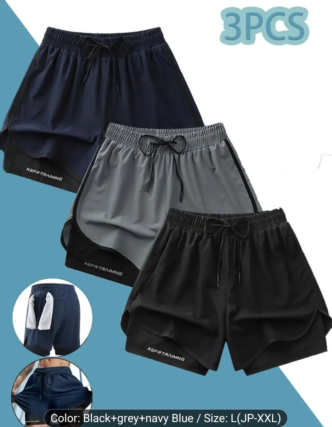 キープトレーニングのスポーツ用ハーフパンツです。 ・カラー:ブラック、グレー、ネイビー ・サイズ:L(JP-XXL) ・3枚セット ご不明点があればお気軽にご連絡ください