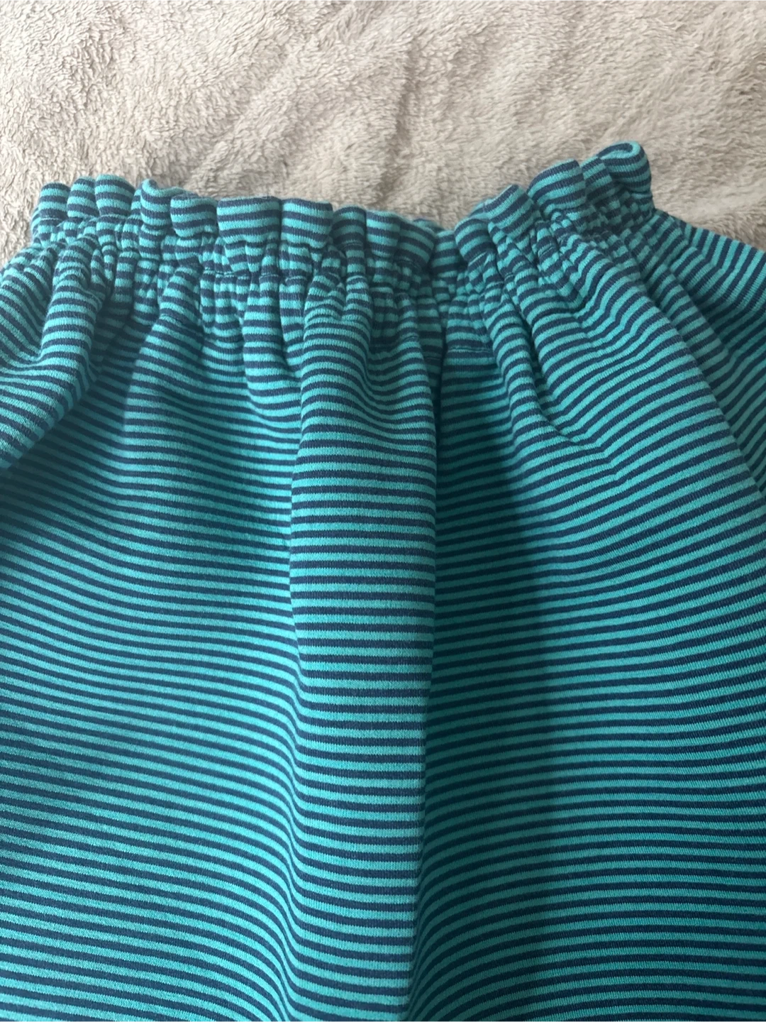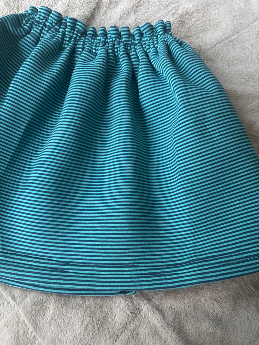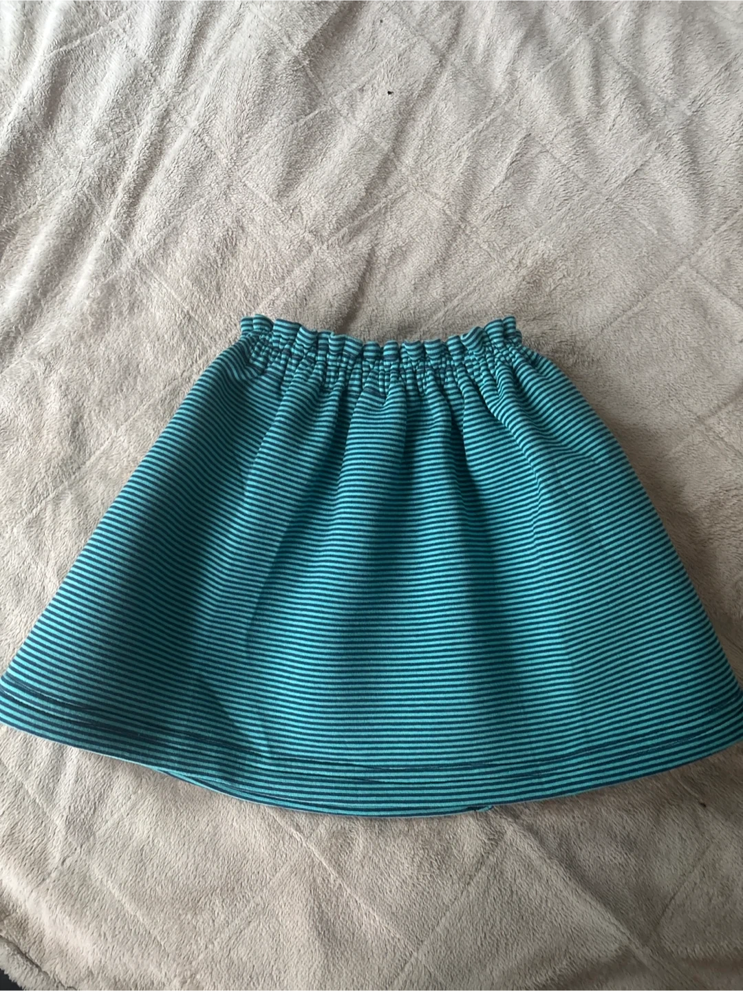 *ハンドメイド* 【ギャザースカート*横ストライプ】 *サイズ:100〜110サイズ *カラー:グリーン&ネイビーストライプ *スカート丈:約30㎝ *ウエスト:23㎝平置き *スウェット生地 【洗濯】 ・ネットにお入れするか、手洗いをしてください。 ・乾燥機のご使用はお避けください。 *心を込めて一つ一つお作りしていますが、ハンドメイドですので、縫い目のズレや歪み等、ご理解の上お願いします。