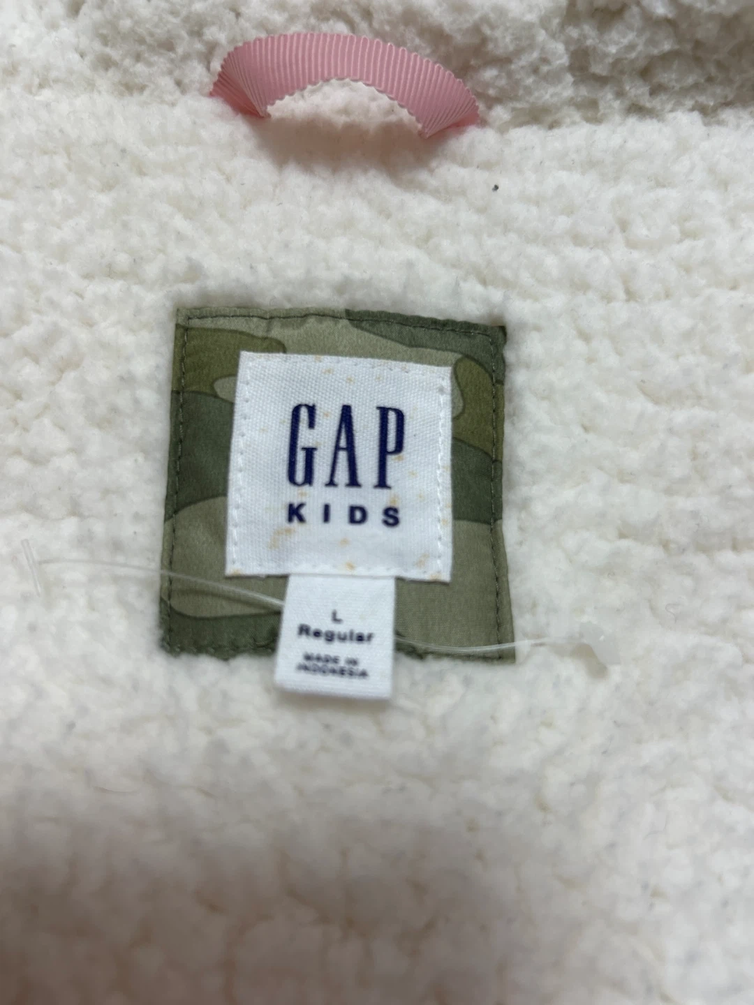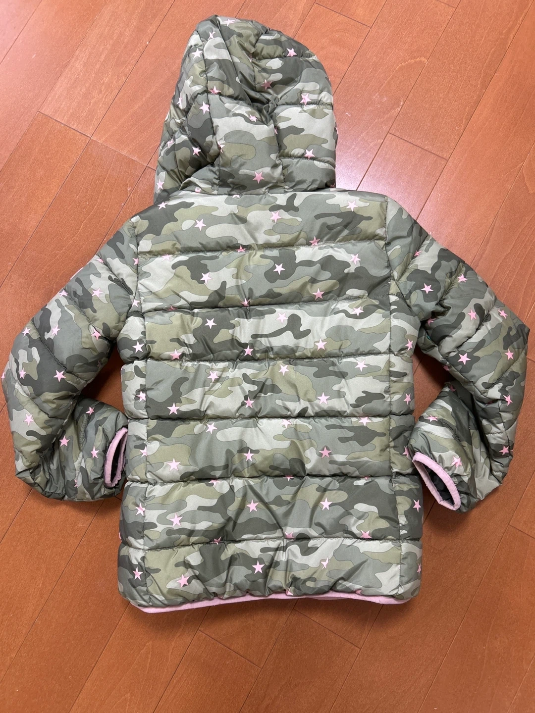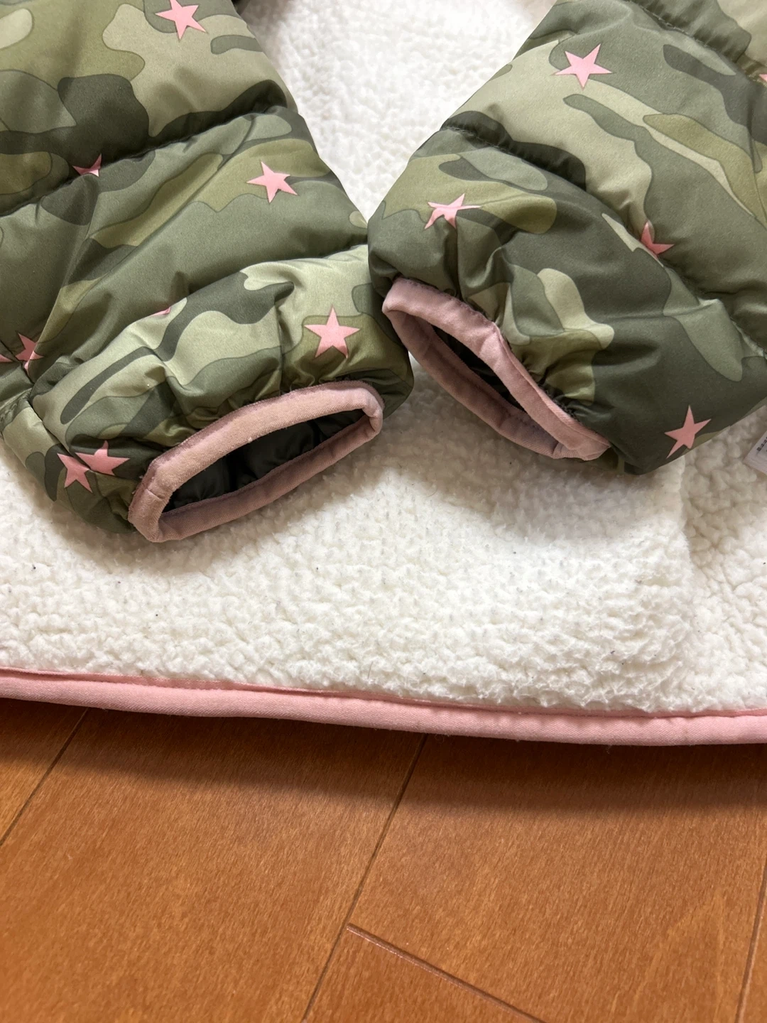 ギャップキッズのアウターです。 子供はすぐ大きくなります〜。今年の冬は中古で乗り切ろーと思って頂ければ、お安いかと思います。 着用感は少し小さめだと思います。 ・ブランド:ギャップキッズ ・サイズ:L ・カラー:迷彩柄、ピンクの星 ・裏地はボア素材 袖ぐり、裾まわり、使用感あります。 中古品であることご了承ください