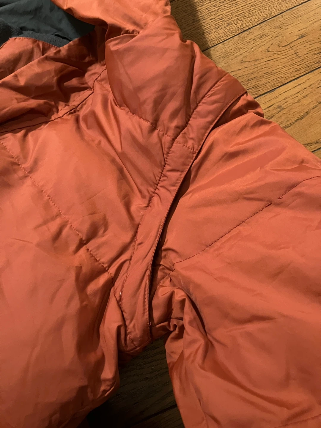 ボタンが一つちぎれています。 イチヂクみたいなオレンジ色です。 腕がジッパーで取れてダウンベストにもなります。 クルーカッツのダウンジャケットです。 ・ブランド:クルーカッツ(CREWCUTS) ・サイズ:12 (150cm) ・素材:ポリエステル100%、中綿:ダウン70%、フェザー30% ・色:オレンジ ・中国製 中古品であることをご了承ください。
