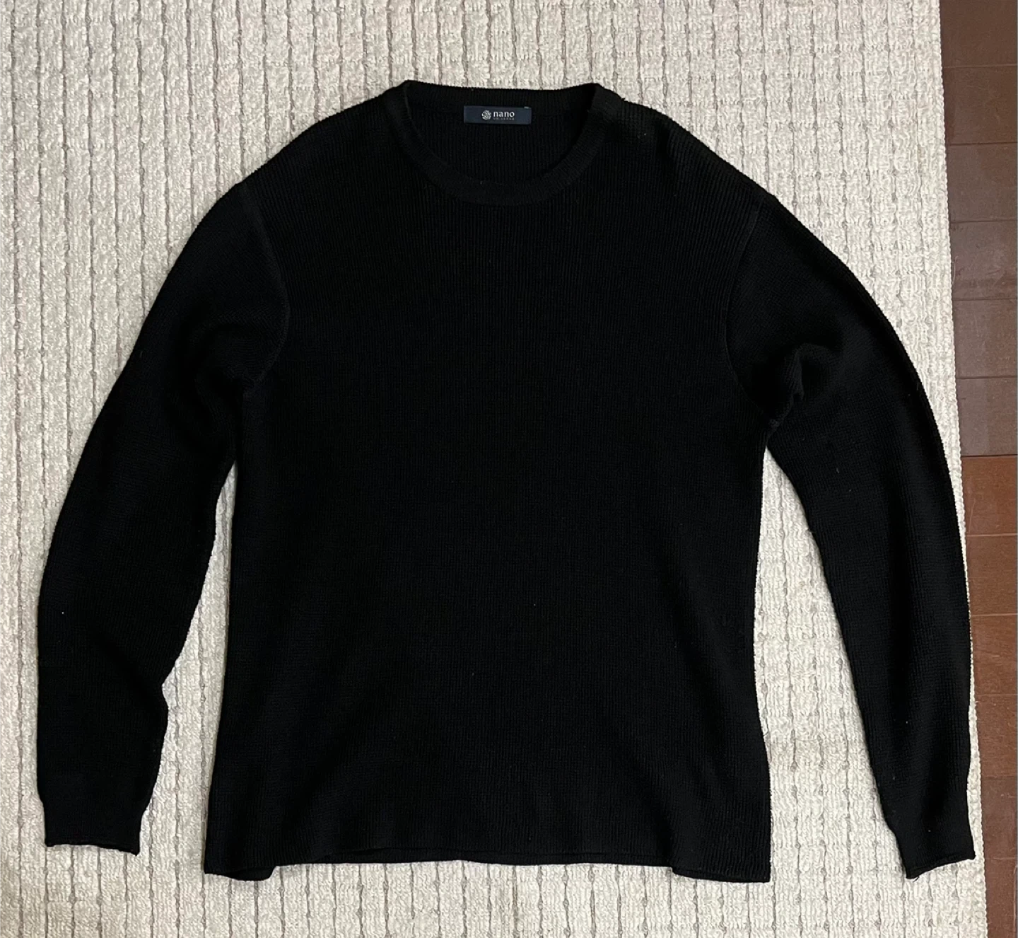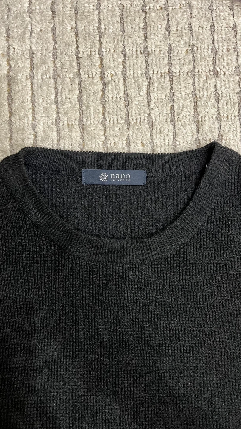 ナノ・ユニバースの黒のメンズニットです。 数回着用しましたが、洋服入れ替えのためお譲りいたします。 Lサイズで、身長174センチでもゆったりオーバーサイズで着ておりました。 ジャケットのインナーでも着られるボリューム感で、秋口から春頃まで使えると思います。 受け渡し場所、日時はご相談させていただきます。 中古品であること、ご理解よろしくお願いいたします。