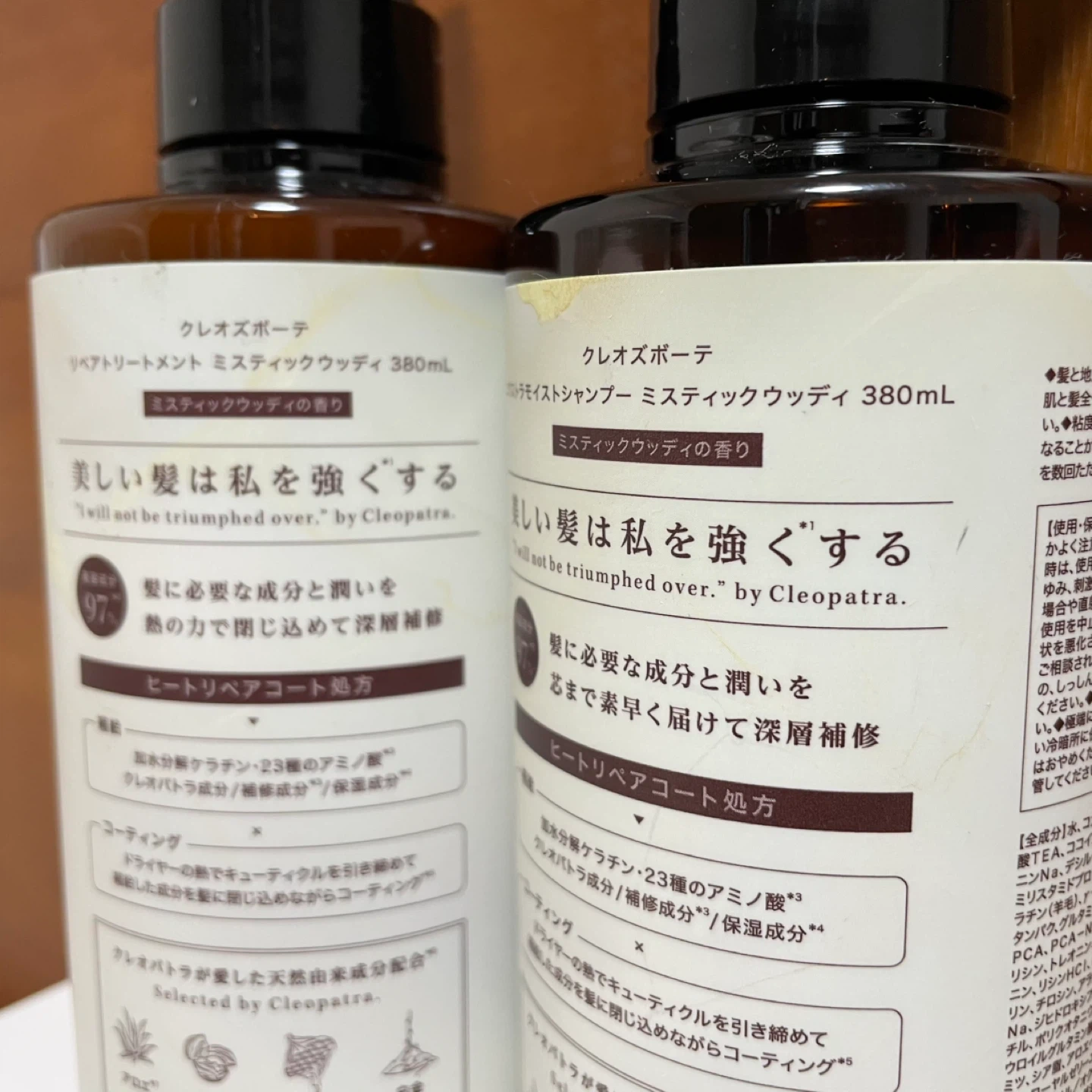 クレオズボーテのシャンプーとトリートメントです。 ・ブランド:クレオズボーテ ・シャンプー & トリートメント ・香り:ミスティックウッディ ・各380mL