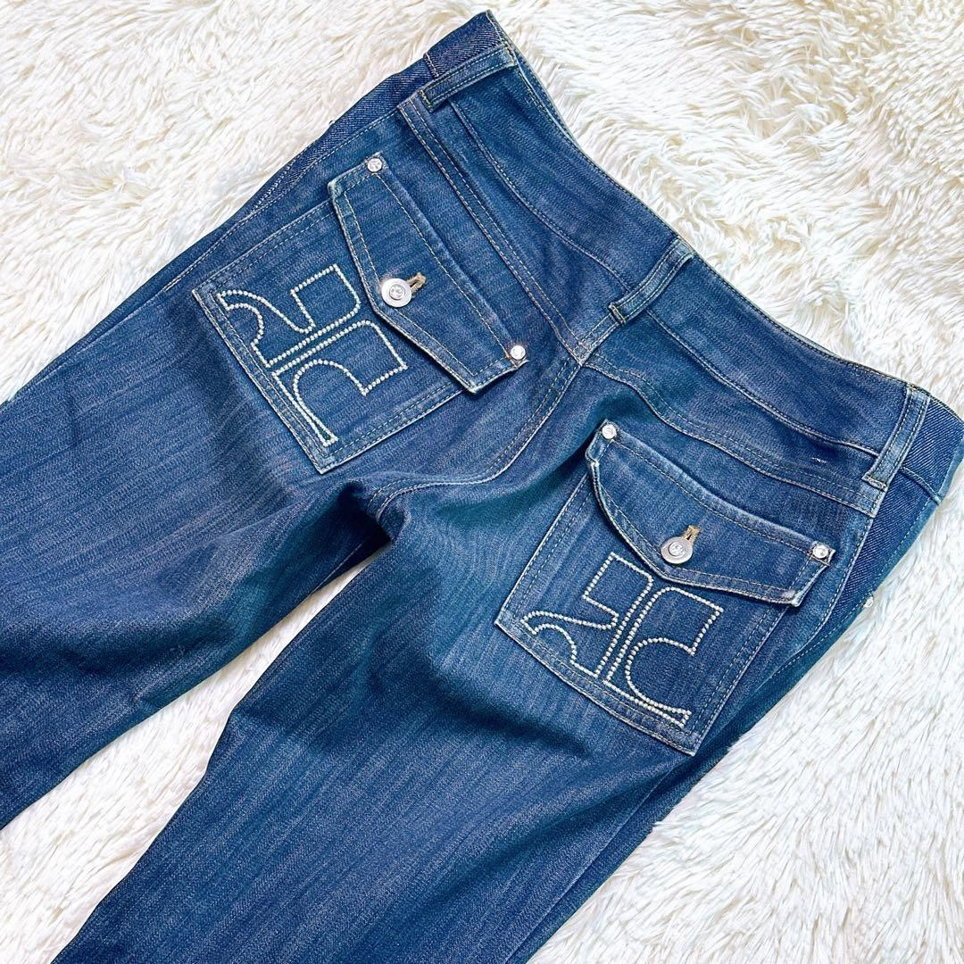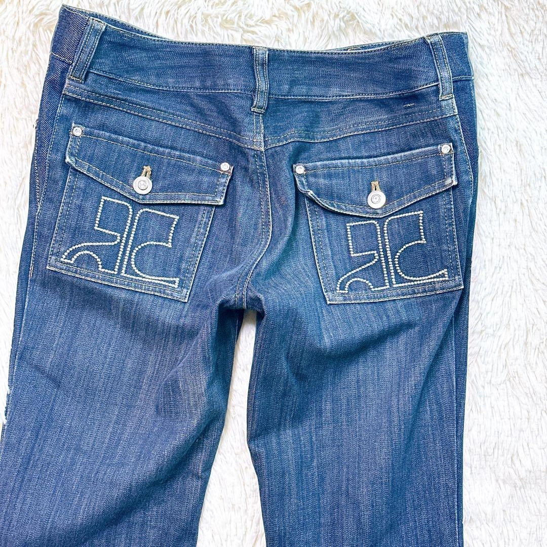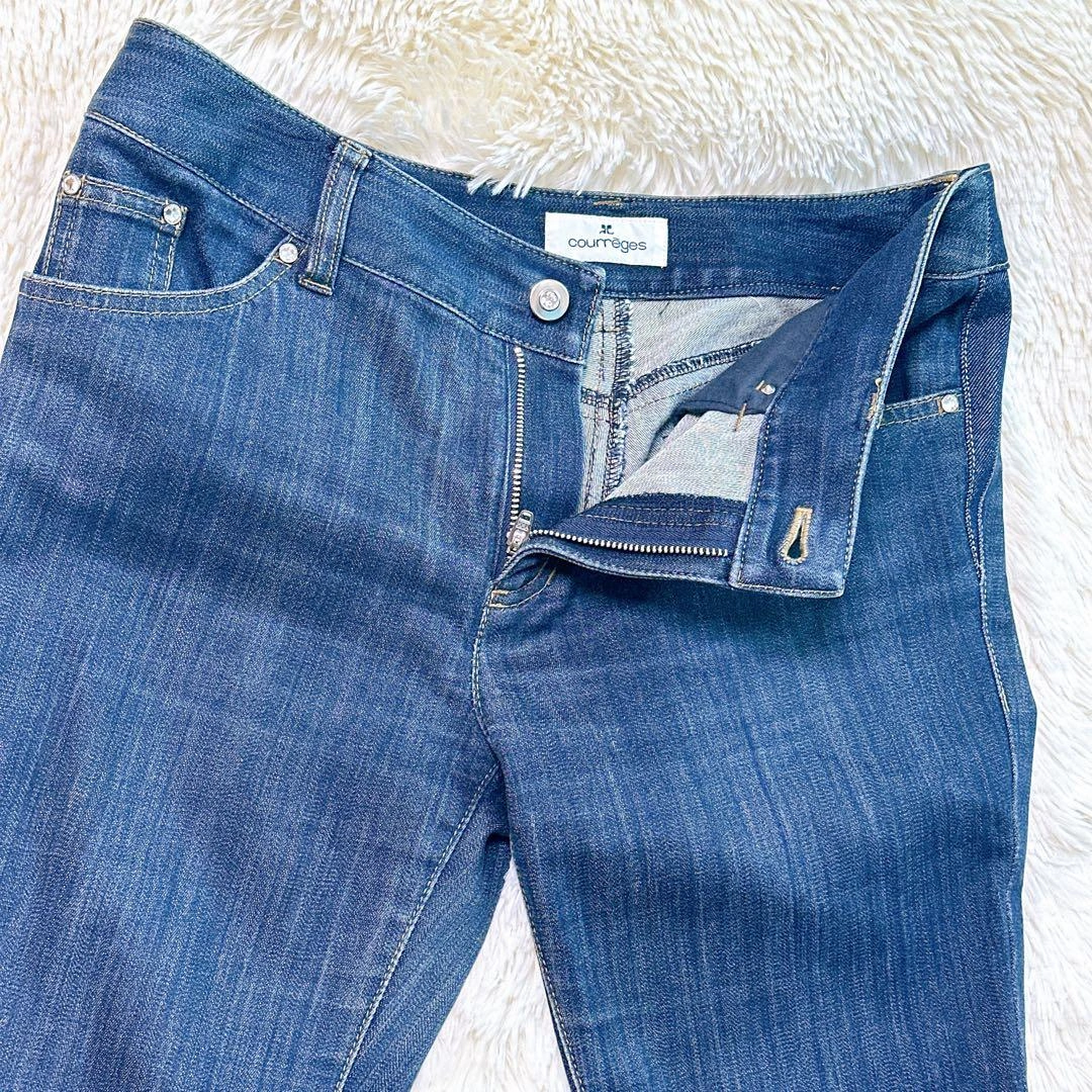 あたたかさご覧頂きありがとうございます。 courrèges クレージュのデニムです。 カラー:ダークブルー 素材:写真をご確認ください サイズ:36(Sサイズ相当) 平置き寸法 ウェスト:38cm 股上:21cm ヒップ:39cm わたり幅:22cm 股下:65cm すそ幅:19cm ※素人寸法のため、若干の誤差はご了承ください。 ダークブルーのストレートレッグデニム、刺繍ポケット付きです。状態は写真にてご確認ください。 ウエスト···レギュラーウエスト 汚れ・破れ・臭いなど···なし ご不明点はお気軽にお問い合わせください。