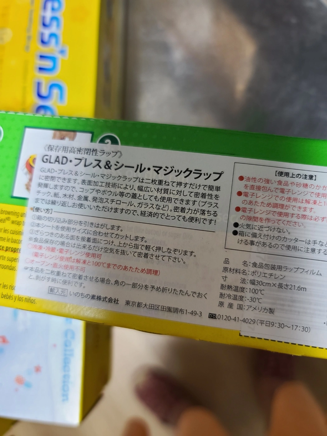■引っ越しの準備で家から離れられないなので 24日12時、または 25日13時~15時の間 ~26日まで マンションまで取りに来ていただける方にお願いします、 四ッ谷三丁目駅と信濃町駅から5分のところです 商品名:GLAD マジックラップ 30cmX21.6m ブランド:GLAD マジックラップ 原産国:アメリカ 表面を覆う数千個の小さな凹凸によってしっかりと密閉、密封してラップします。 ・有害物質は使用していないので食材はもちろんプラスチック、紙、金属、木製の食器など あらゆるものに安心して使用いただけます。 ・また野菜や魚介、肉など生鮮食品の鮮度保持にも抜群の効果を発揮します。 ・通常のラップと同じように、冷凍や電子レンジでの調理も可能です。 ・ラップを余分に引き出してしまった場合は、両サイドの巻き取りハンドルを回して 簡単に再収納できます。 【使用方法】 (1)ロール端をつまみ、勢いよく引いて切り取る。 (2)容器をラップするときはたるみの無いよう伸ばし、容器のふちをラップの上から指でなぞる。 (3)くっつきます。
