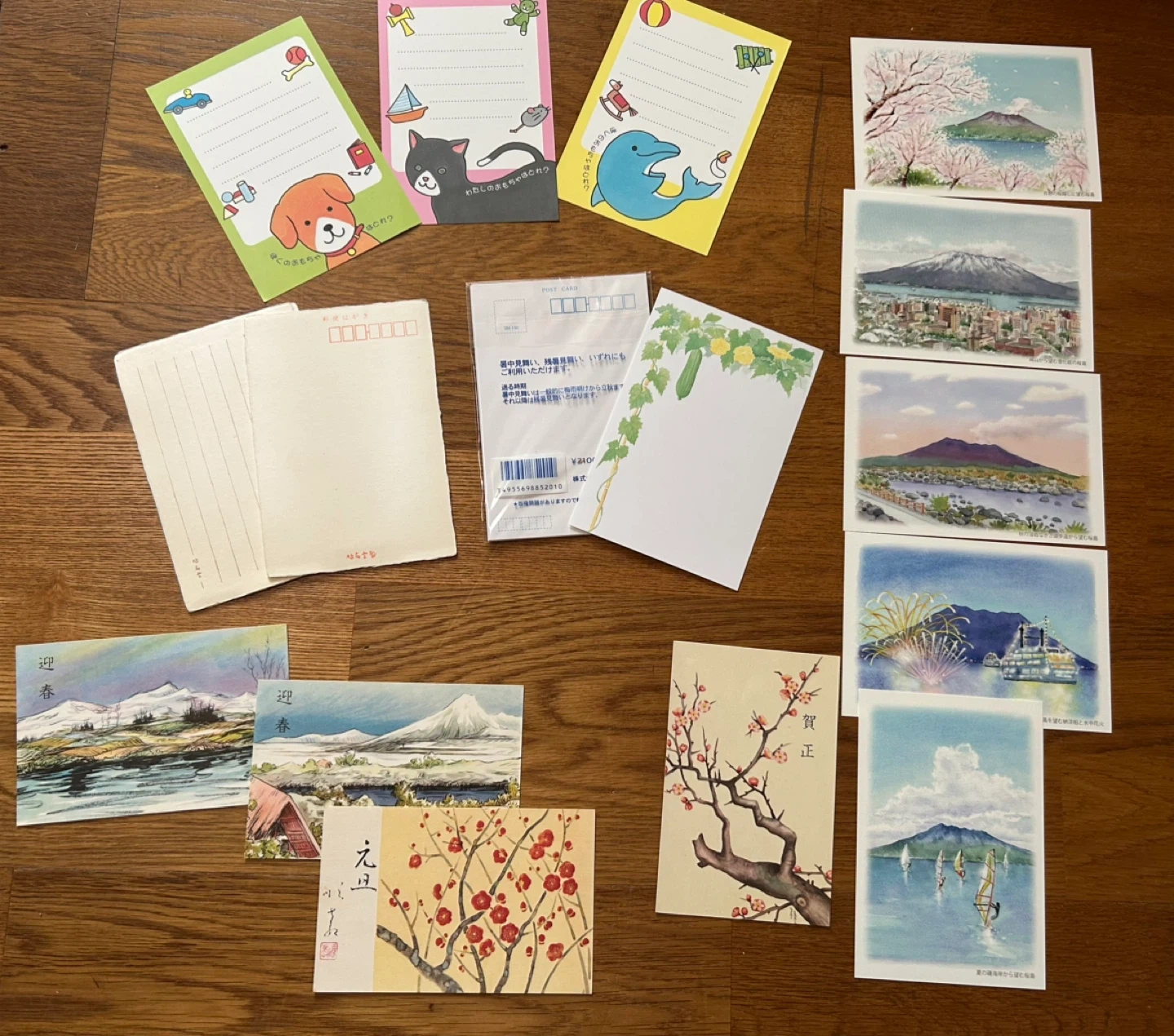 グリーティングカードと絵はがきのまとめ売りです ・未使用品 ・橋本虹子さんのイラスト ・色々な季節の桜島イラスト ・口で描いた年賀状 ・サマーポストカード(ヘチマ) ・お子さま用カード 用途にあわせて お選び頂けます 中古品であることご了承ください