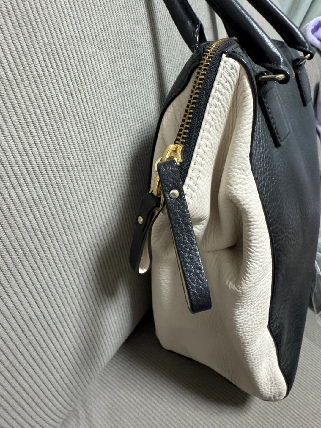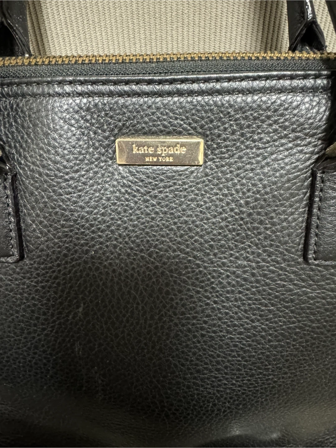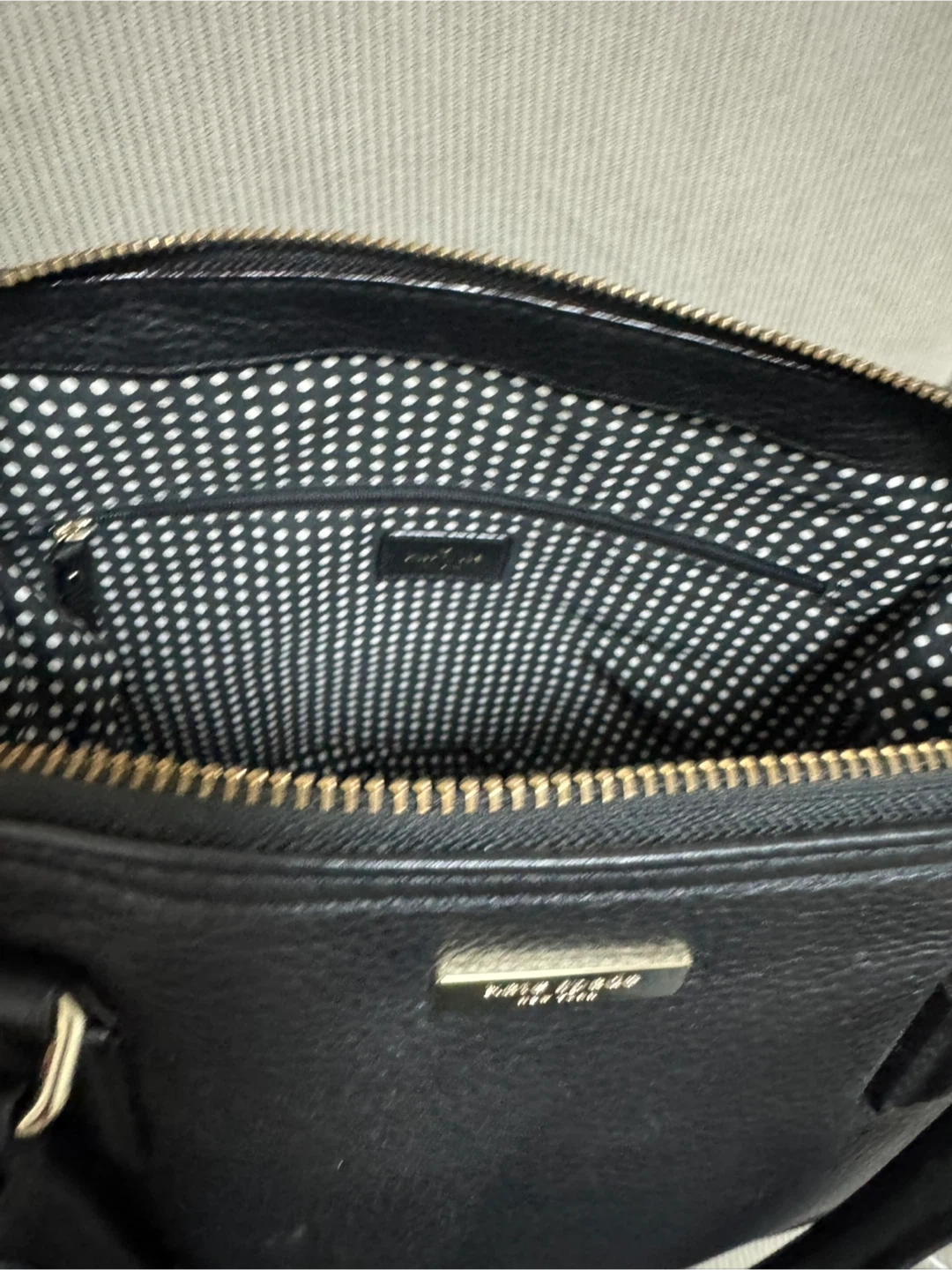 ケイトスペードのハンドバッグです。 ・ブランド:ケイトスペード ・カラー:ブラック、ホワイト ・付属品:ショルダーストラップ(未開封) ・状態:一部に小さなキズあり ・大きさ約30×30×12cm 中古品であることをご了承ください。