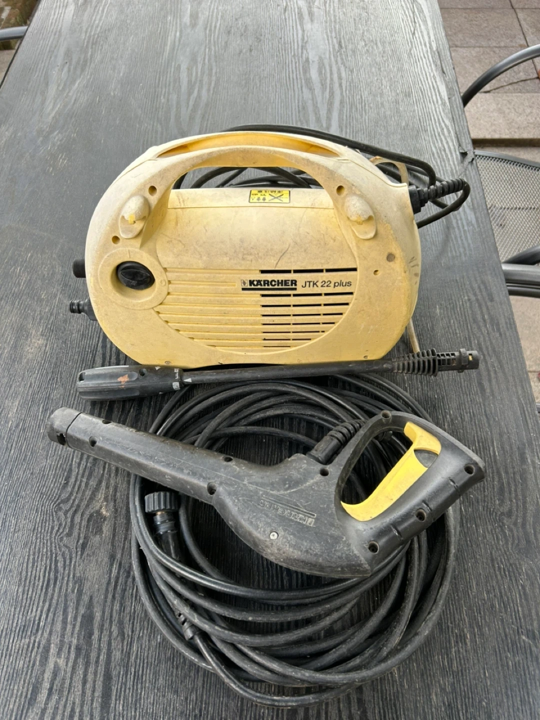 ケルヒャーJTK-22の出品です。 かなり使い込んでますが、普通に使えます。 但し、スイッチONで、水を出さない状態になると、モーターが30秒おきに位に1回回転音がします。 使用中は、普通に使えます。 入門用にいかがでしょうか? ご検討よろしくお願いします。
