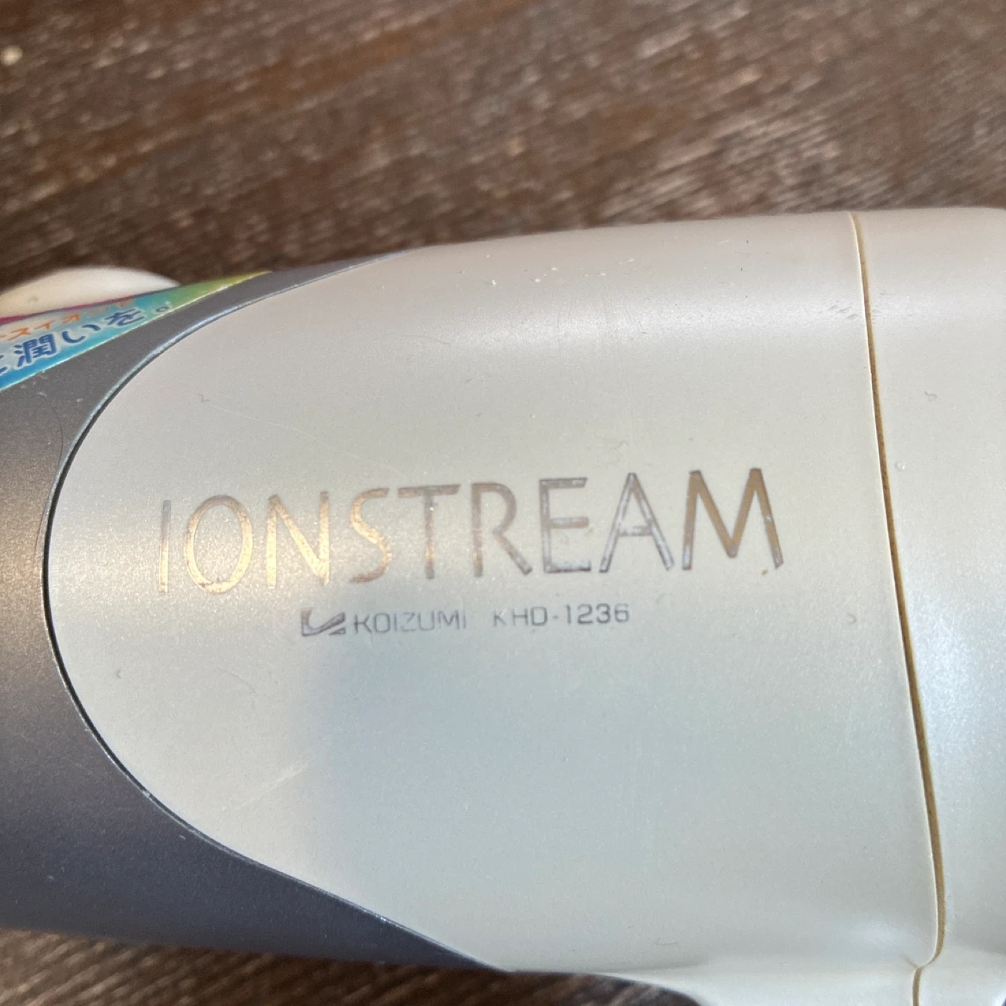 コイズミ IONSTREAM ヘアドライヤー IONSTREAMのグレーとホワイトのヘアドライヤーで、3段階の風量設定が可能。 - モデル名: IONSTREAM - 色: グレー/ホワイト -型番:KOIZUMI KHD-1236 - 機能: 3段階風量設定(冷/強/弱) - デザイン特徴: 透明なノズル付き 小傷、多数ありますが、使用する分には問題ないと思います。 usedですので、ご理解の程、ご入札願います。