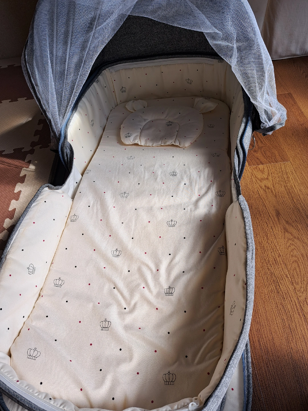 コカリズムのポータブルベッドインベッドです 2024年11月にアマゾン買った製品ですが。 帰国しますので良かったらどうぞう 下記リンクご参照まで https://amzn.asia/d/3oPlXSB 追加にミノン全身ベビーシャンプー https://amzn.asia/d/0lmILkF 下記アマゾンからの情報です。 Color gray Brand Cocorhythm Product Dimensions 88L x 40W x 50H cm Material Linen Maximum Weight Recommendation 15 Kilograms Assembly Required No Recommended Age: 0 to 20 months baby; Weight: Approx. 2.2 lbs (1 kg); Color: Gray/Khaki; Size: When Unfolded: 34.6 x 15.7 x 6.3 inches (88 x 40 x 16 cm); When Stored: 16.5 x 15.7 inches (42 x 40 x 18 cm) [Materials] Body Cover: 100% Linen, Cushion Cover: 100% Cotton, Cushion Pad: 100% Polyethylene. Accessories: Mosquito net, shoulder strap, baby pillow Safe Design: Baby first safe design by expert supervision. Sturdy bedside guards protect your baby from danger Easy to Carry: It can be folded into a compact size and lightweight, so it is convenient when you go out (Safe and Secured) It has passed strict domestic inspection standards, and comes with a 30-day return policy so you can use it with confidence