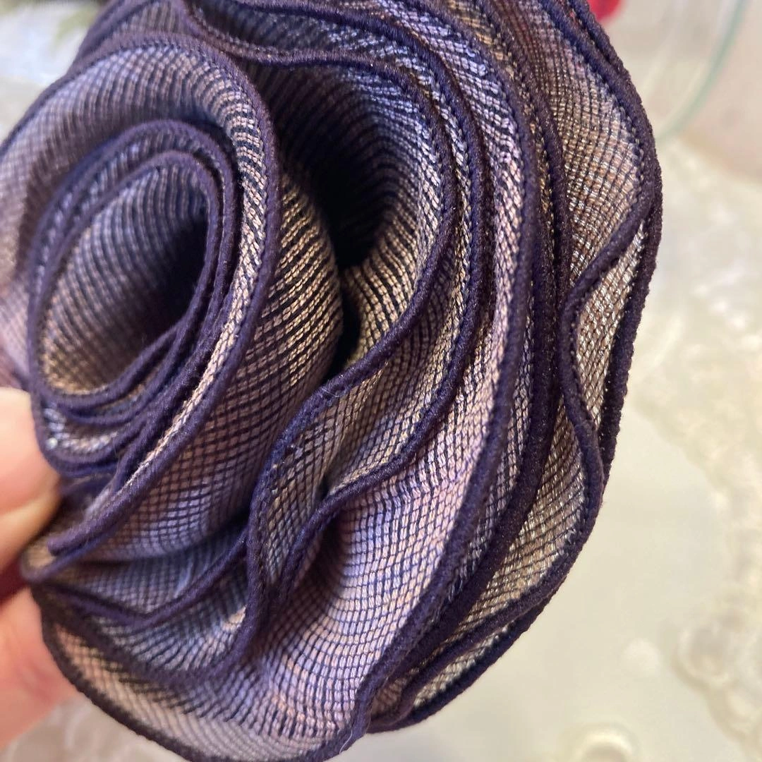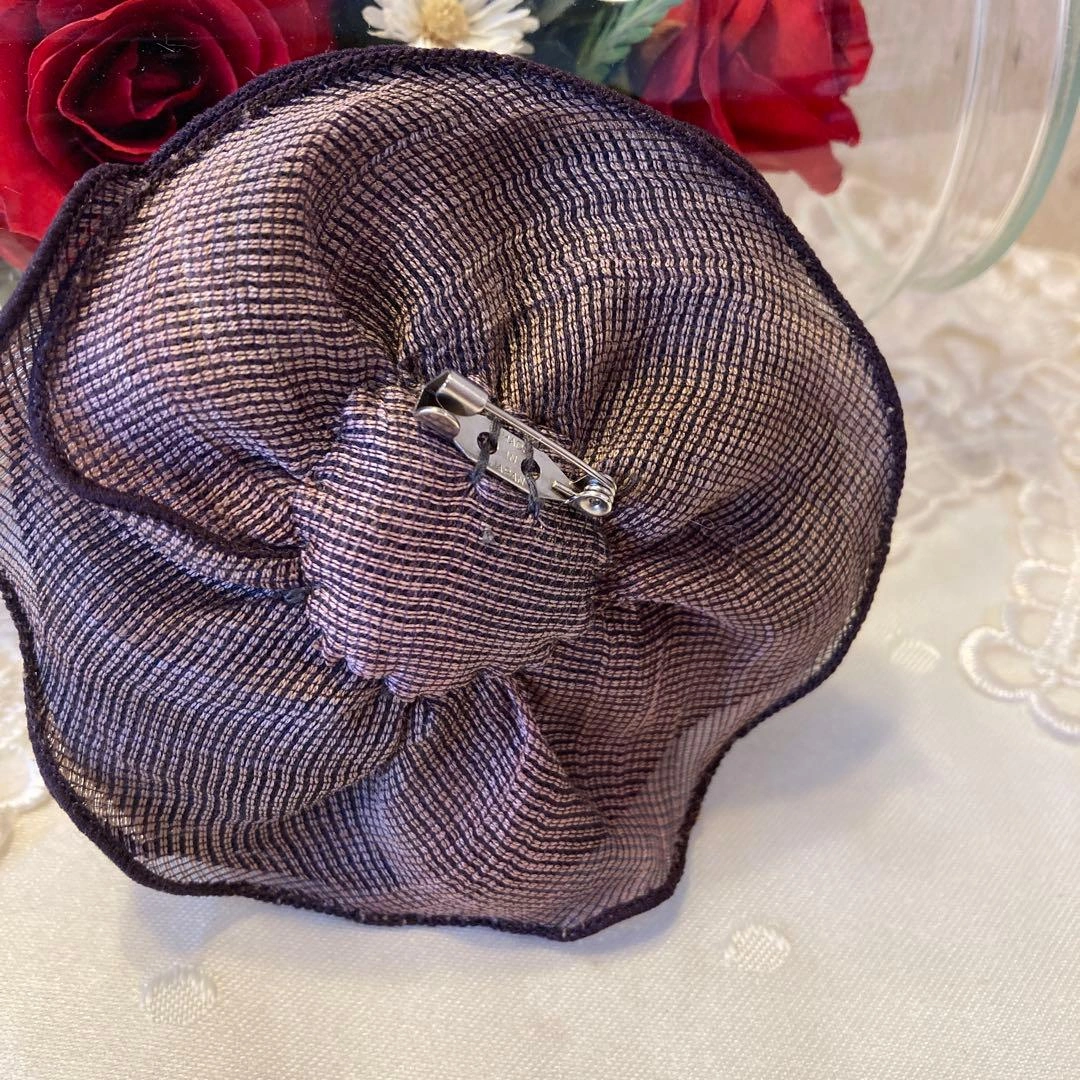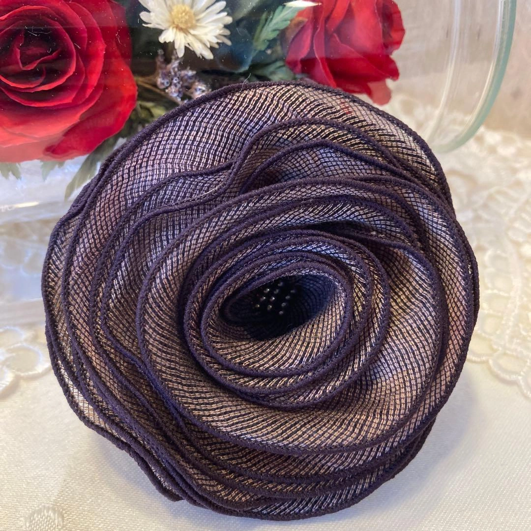 ブラウン系のお洋服に合いそうなボリュームのあるコサージュです。 縁がしっかりとしています。 セーターやジャケットに一つ付けて頂くだけでとても華やかになりました。 ご希望の方はお気軽にご連絡ください。