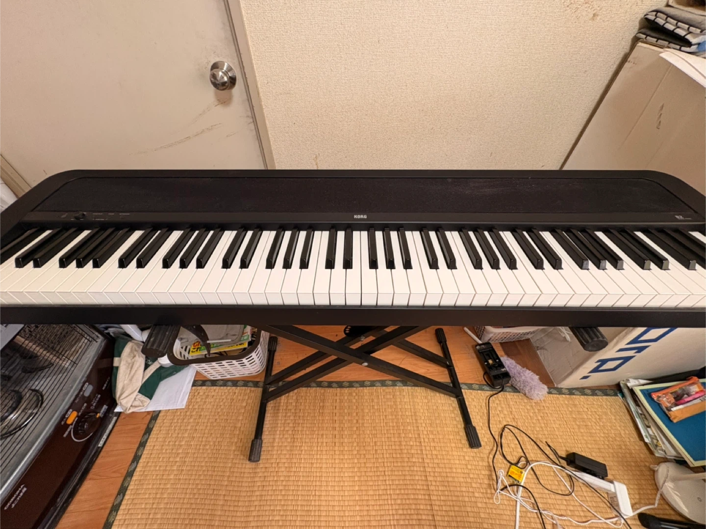コルグの電子ピアノです。 【情報】 ブランド:コルグ 型番:B2 2020年7月に購入しました。 【状態】 使用感、剥げてる鍵盤がいくつかあります。写真を参考にしてください。 音の不具合はありません。 【付属品】 電源アダプター、ペダル、譜面台、布製カバー、スタンド 椅子はありません。 説明書はないので、ネットからコピーしたのをお渡しします。 中古品であることをご了承ください。 自宅まで(川崎市高津区、最寄駅は梶が谷です)駅取りに来られる方でお願いします。
