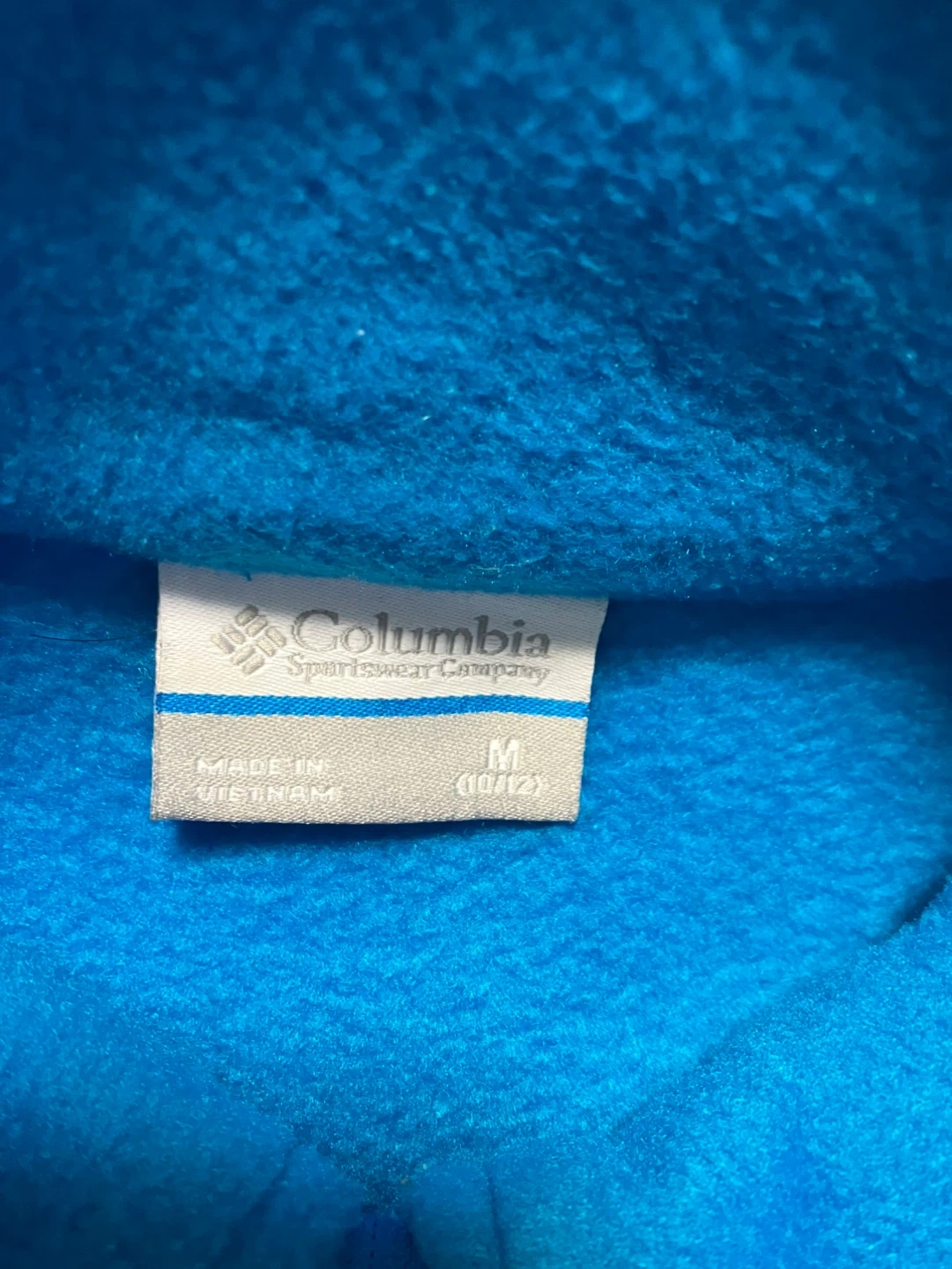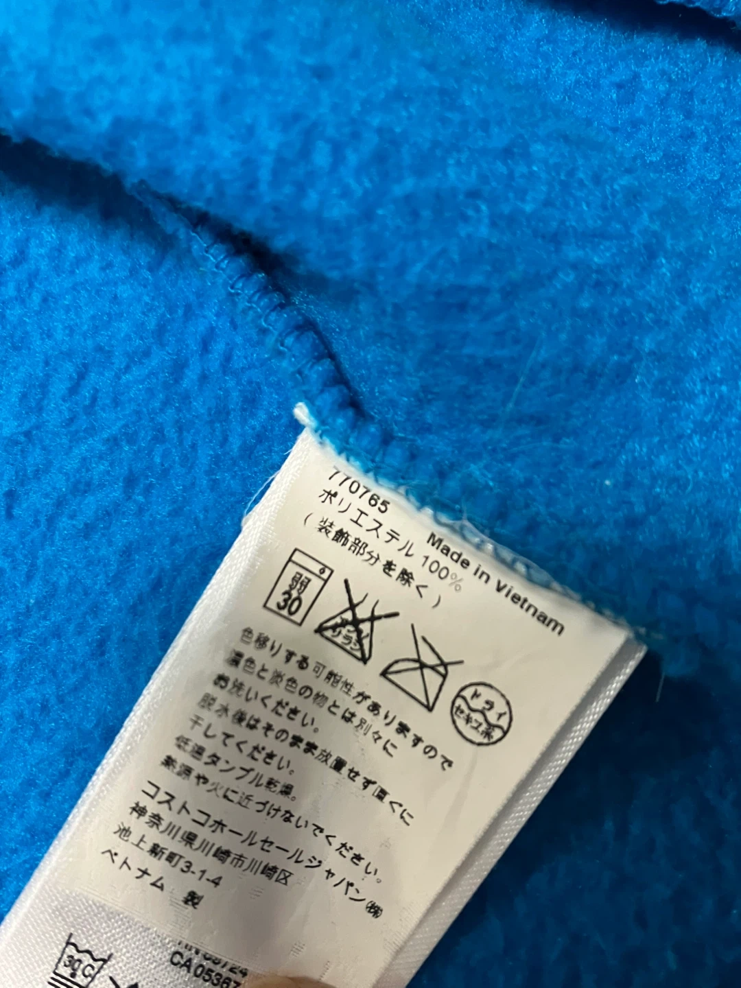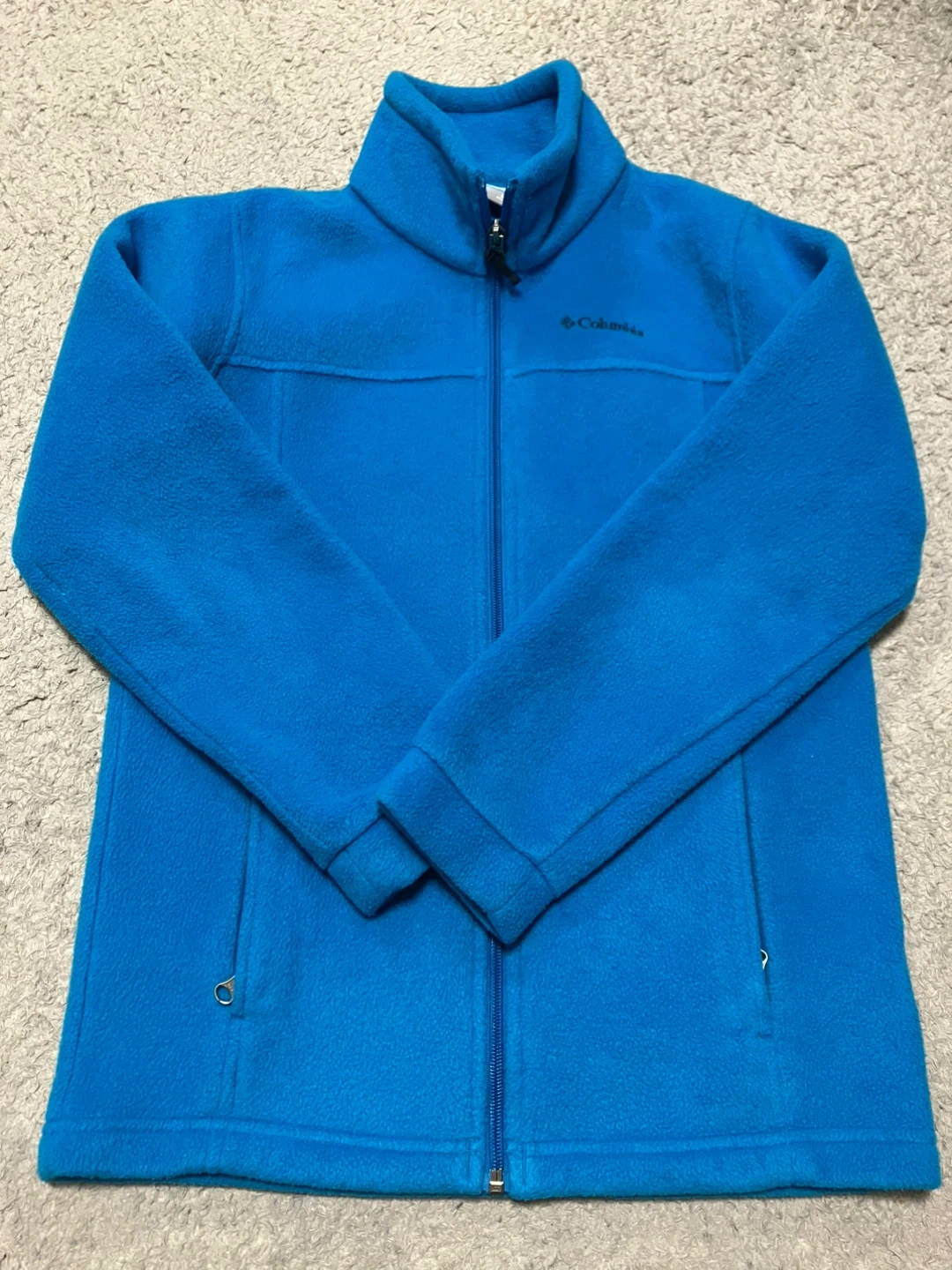 コロンビアのフリースジャケットです。右腕の縫い合わせのところが、1箇所取れていたので少し縫いました。最後の写真を確認してください。しっかりした生地で暖かいです。 平置きサイズ 身幅44cm 丈58cm ・ブランド:コロンビア ・色:青色 ・サイズ:M(10/12) ・素材:ポリエステル100% ・状態:使用感は少なめです。 中古品であることをご了承ください。