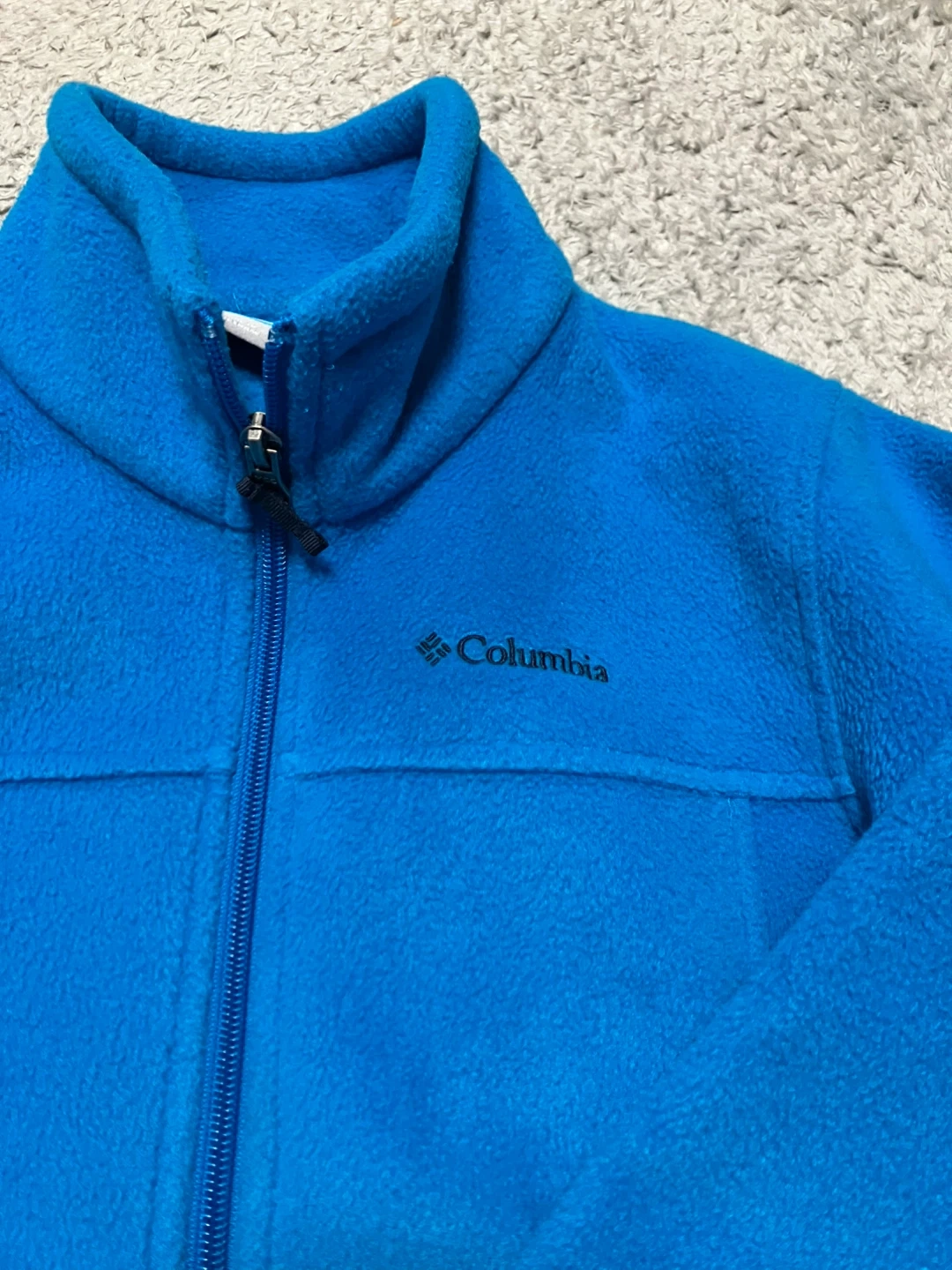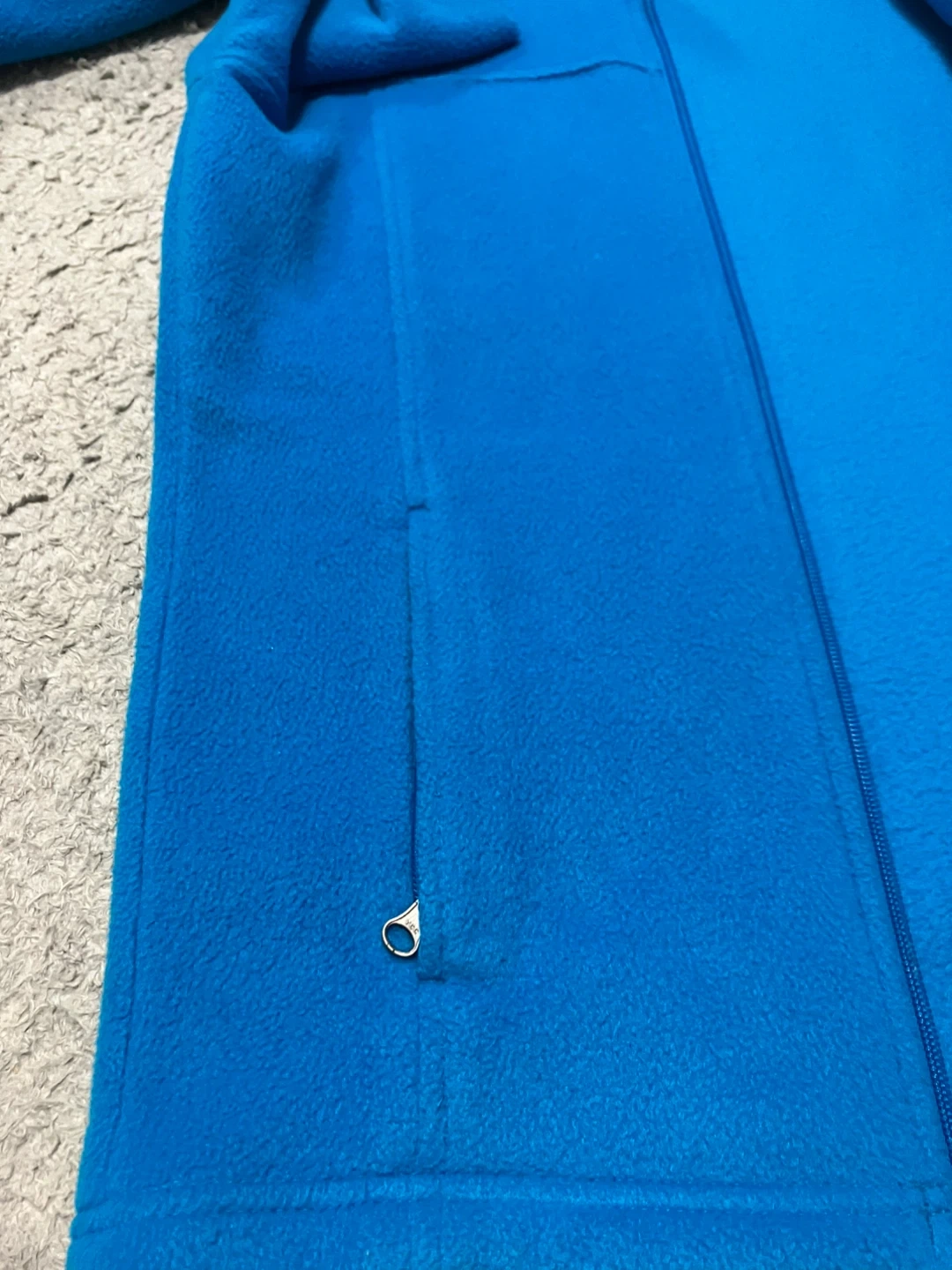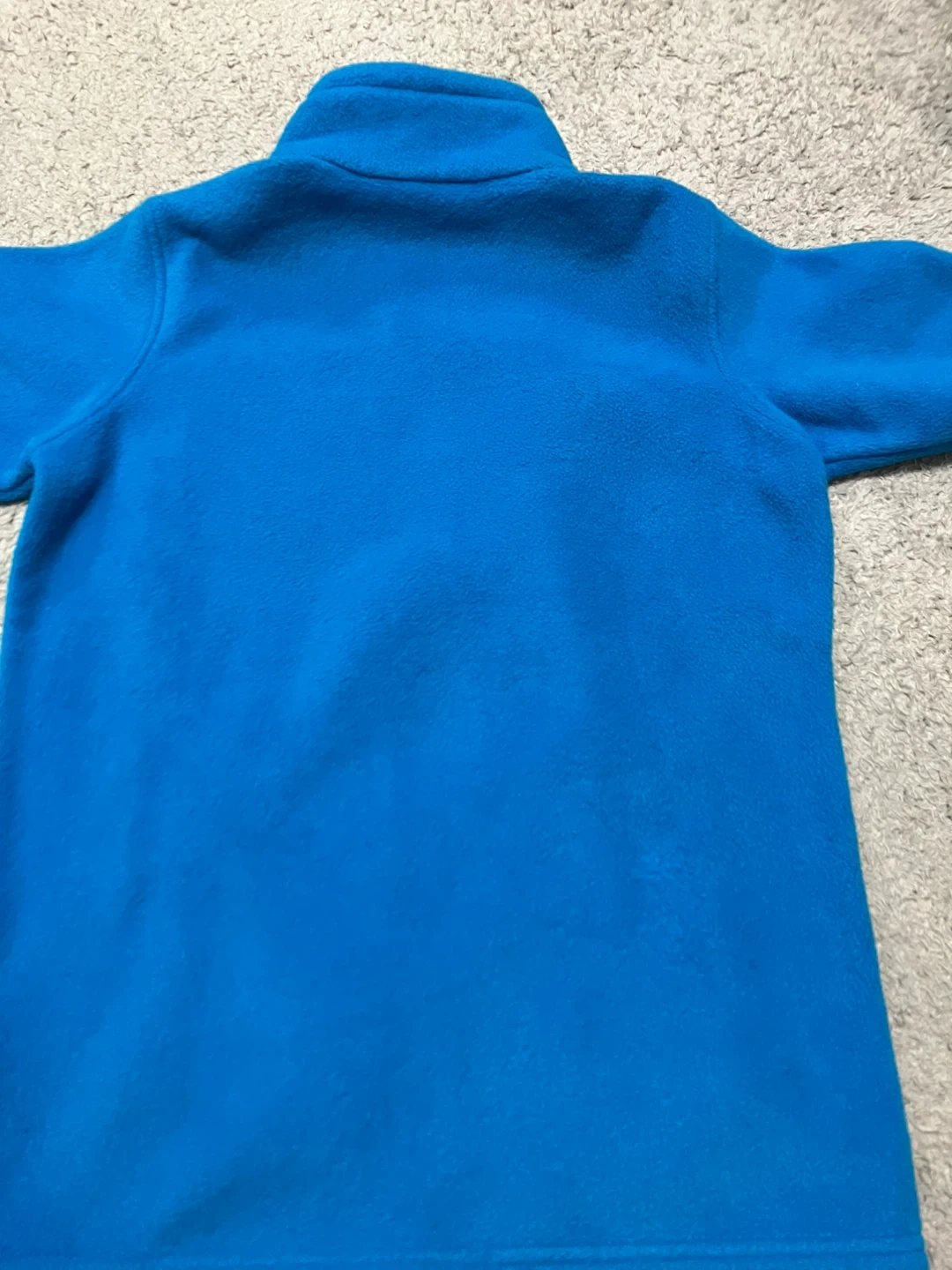 コロンビアのフリースジャケットです。右腕の縫い合わせのところが、1箇所取れていたので少し縫いました。最後の写真を確認してください。しっかりした生地で暖かいです。 平置きサイズ 身幅44cm 丈58cm ・ブランド:コロンビア ・色:青色 ・サイズ:M(10/12) ・素材:ポリエステル100% ・状態:使用感は少なめです。 中古品であることをご了承ください。