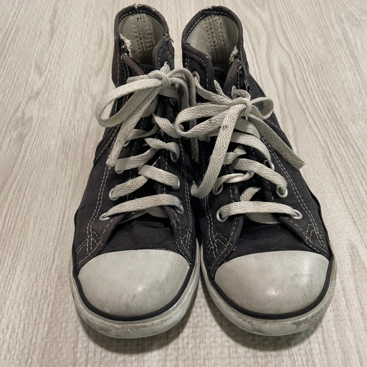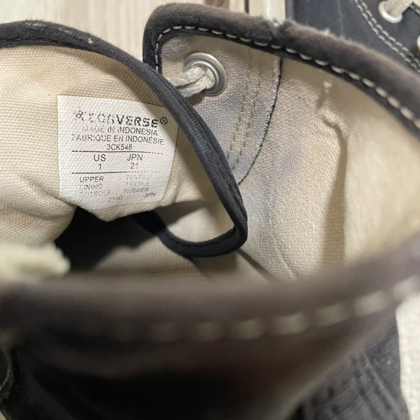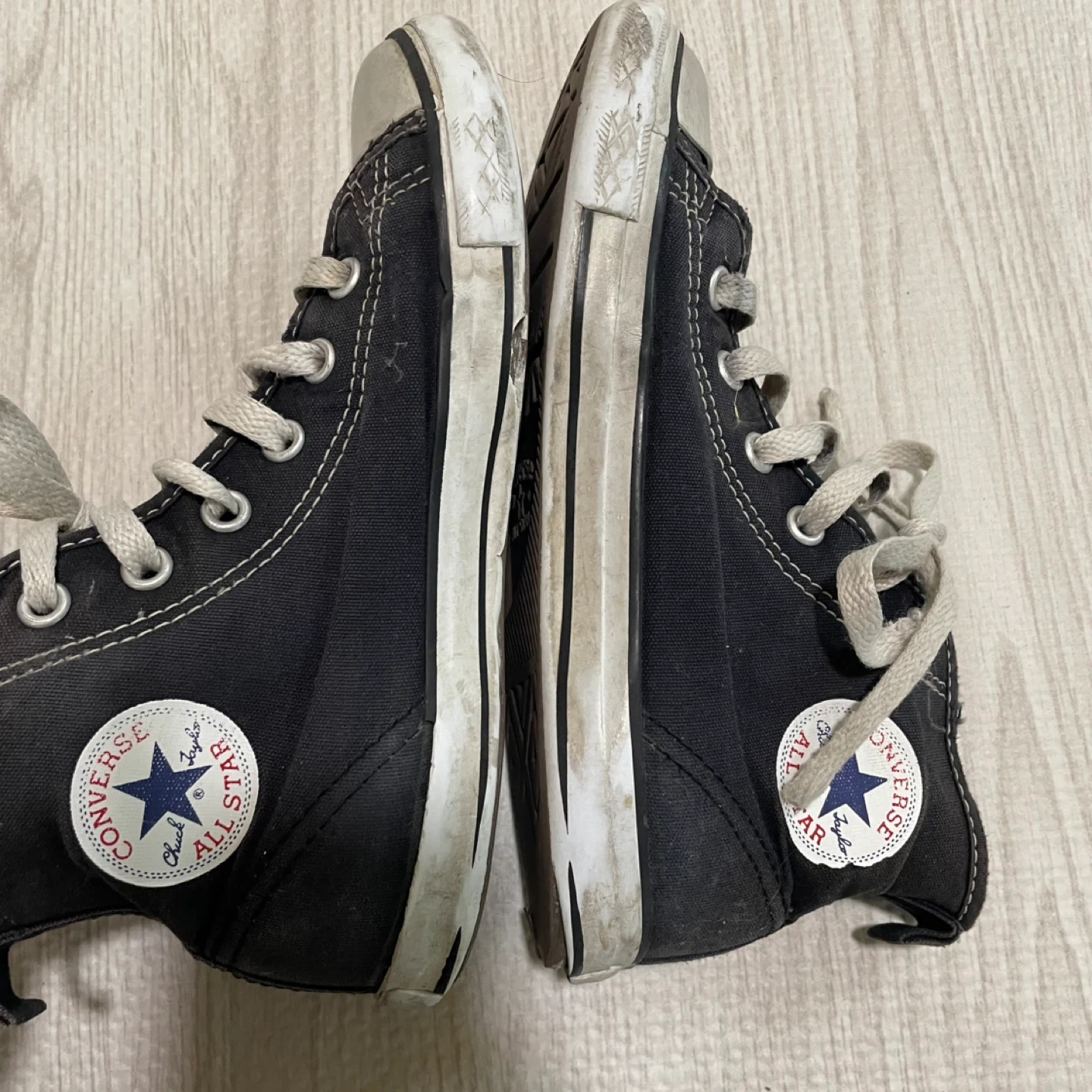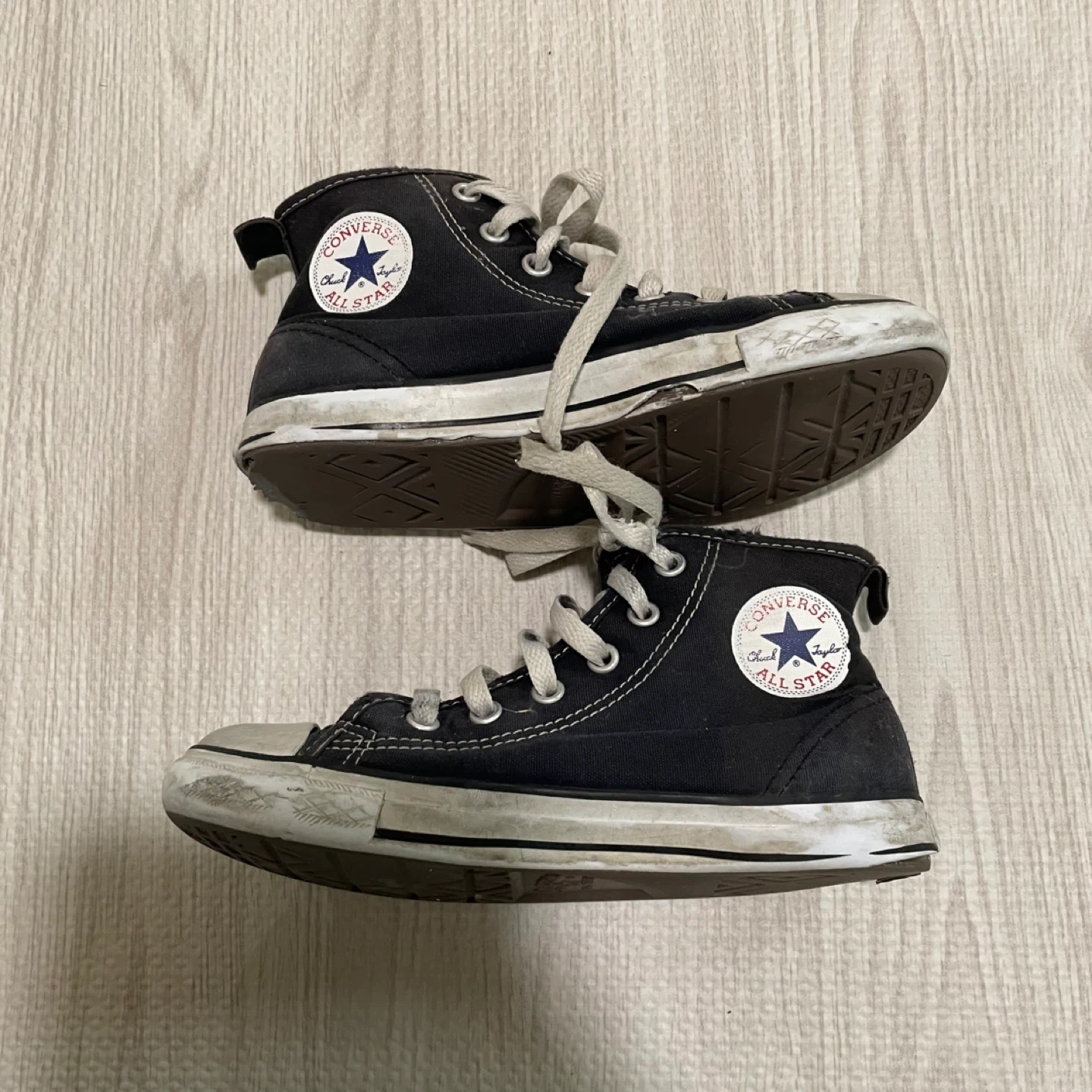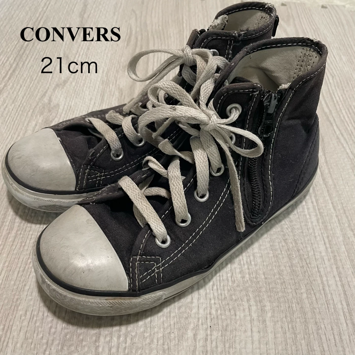 コンバースハイカットスニーカーです。 ・ブランド:コンバース ・サイズ:21cm ・色:黒 ・使用感あり ・ソールに剥がれあるため雨の日の使用はお勧めしないです。 中古品であることをご了承ください。