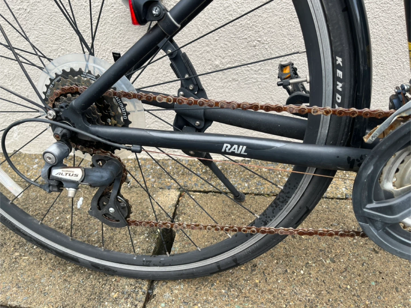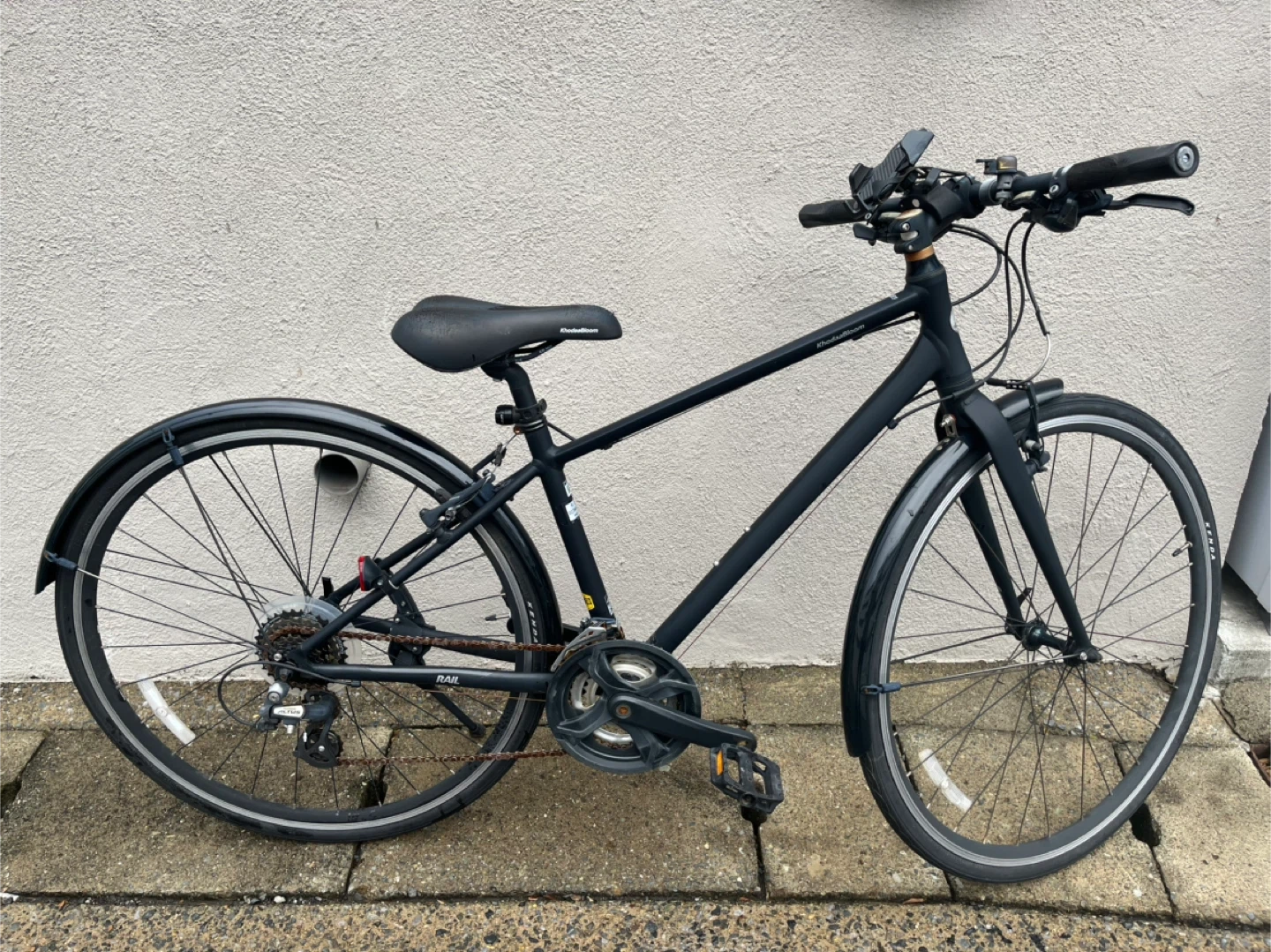コーダーブルーム RAIL のクロスバイクです。 【情報】 ・カラー:ブラック ・ブランド:KhodaaBloom(コーダーブルーム) ・モデル:RAIL ・ギア:SHIMANO ALTUS 【状態】 使用感・サビ・キズがあります。 また、サドルに劣化が見られます(日差しや雨にさらされていたため)。 走行には問題ありませんが、修理が必要な場合もあります。 【付属品】 ・ロック ×2 ・フロントライト ×1 ・リアライト ×1 ・スマホホルダー ×1 【その他】 ・宮崎台駅付近または自宅近くでの受け渡し希望です。 ・タイヤの空気を入れる必要があるかもしれません。 ・中古品であることご了承ください。 お値段はご相談可能です😊