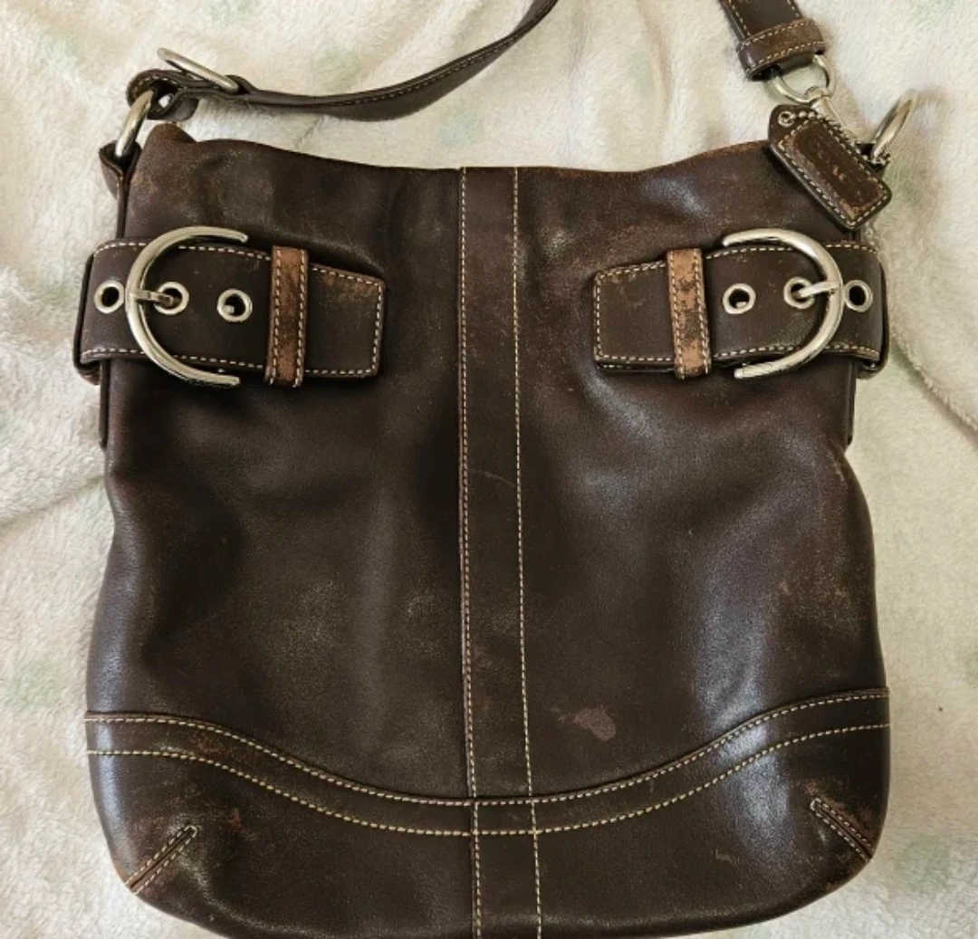 コーチのショルダーバッグです。 ・カラー:ブラウン ・素材:レザー ・使用感、擦れ、キズあり ・内部に汚れあり ・型番:G05S-1452 だいぶ使用したレザーのCOACHショルダーバッグです キズ汚れ、シミあります 中古品であることをご了承ください。