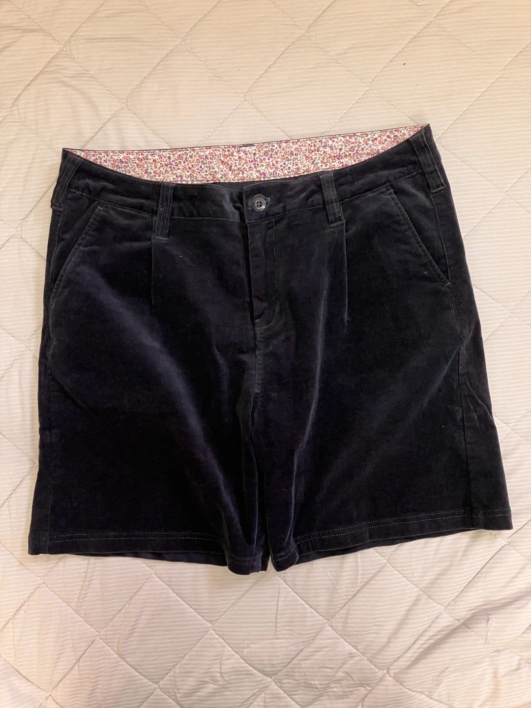 細うねのコーデュロイのキュロットパンツです。 内側の花柄模様が◯ 形的にはストレート カラータイツやレギンスと合わせて! •3Lサイズ ・色:紺色