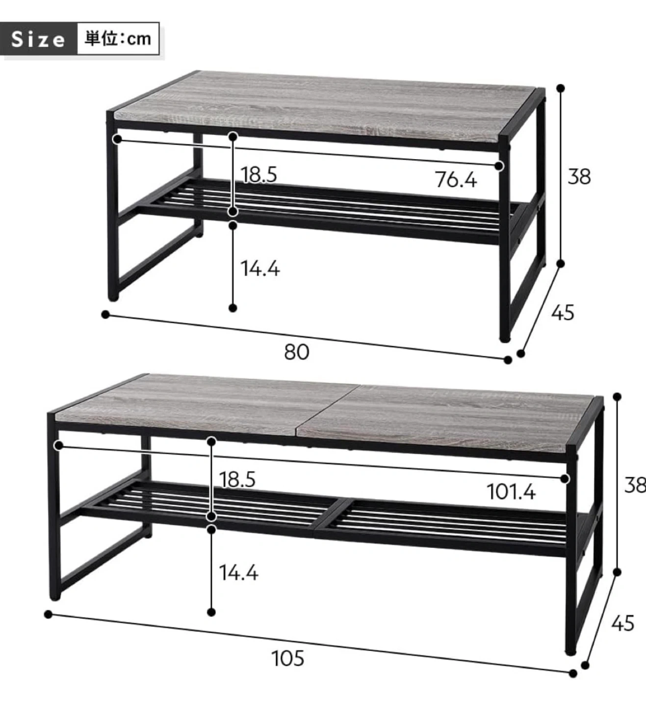 • サイズ・寸法45奥行x105幅x38高さ
