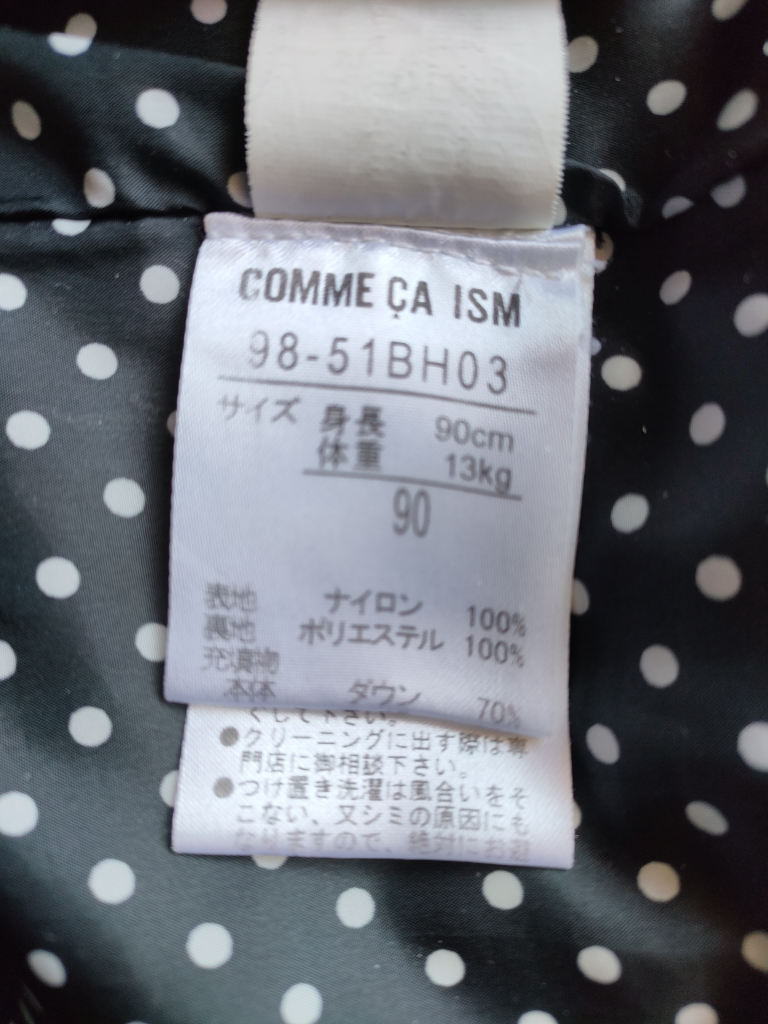コムサ・イズムの黒のダウンコートです。 サイズは90のキッズ用です。 約10000円で購入しました。 ダウン70%でとても軽くて暖かいです。 写真のような少し白くなってる部分やほつれ、ボタンにも傷がありますが、まだまだ使用できると思います。 子供が使用した中古品になりますのでご理解いただける方、ご検討宜しくお願い致します。