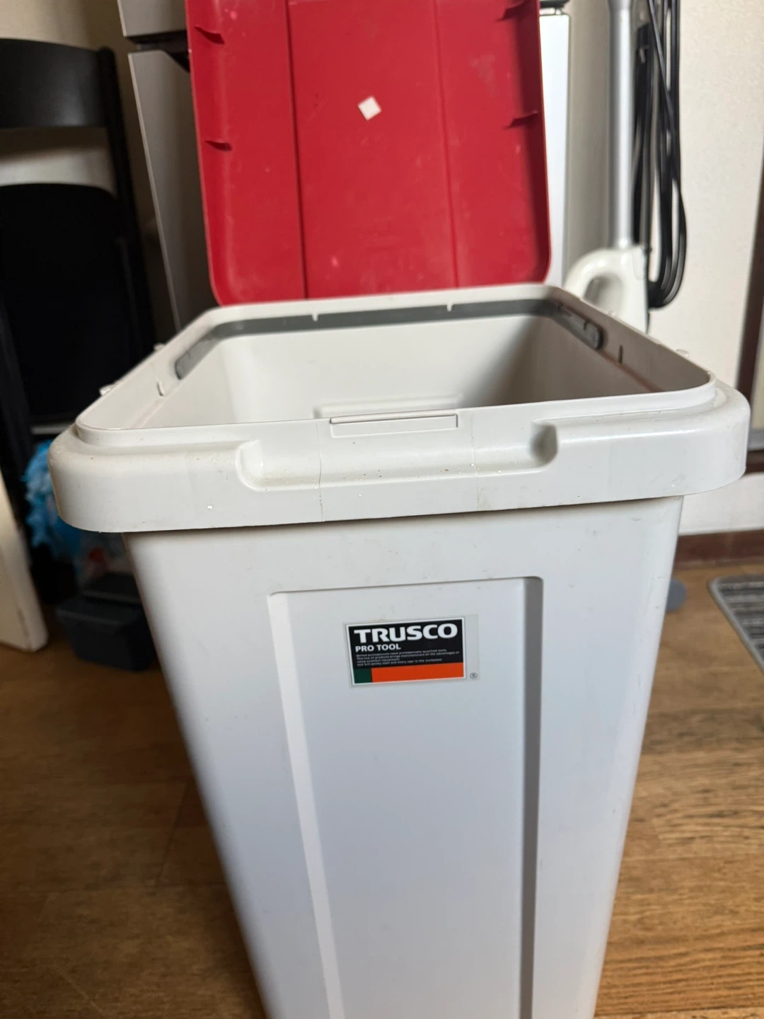 トラスコの収納ボックスです。 ・ブランド:トラスコ ・PRO TOOL ・色:白、赤 ・容量:45L ・日本製 ・材質:ポリプロピレン ・耐熱温度:110℃ ・耐冷温度:-20℃ ほこりしか大きめ汚れありません。 中古品であることご了承ください。