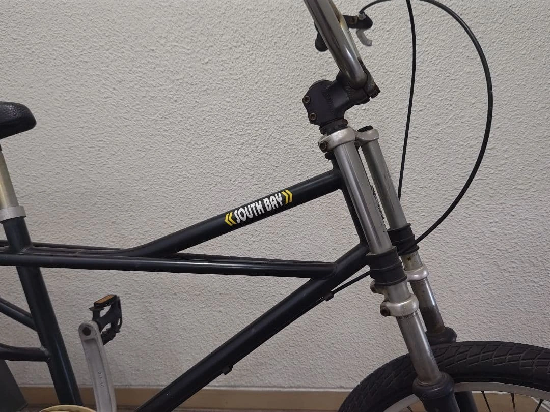 サウスベイ バハ BAJA MODEL SS ディスクブレーキ採用 約20年前に購入し、放置しておりました。当時別売りだったリアフェンダーもついております。 サドルの切れ割れがあり、無理やり補修してあります。その他サビ、汚れなどあります。ブレーキなど整備が必要なため、ジャンクとして 出品いたします。状態については画像にて判断頂き、判断できない場合は購入をお控えください。 自転車の整備が自力で可能な方のご購入をお願いいたします。 大田区大森駅近辺で直接引き取り可能です。 防犯登録はしておりません。 特徴:'80年代の「ヤマハ・モトバイク」をイメージしたデザインの商品。前後のサスペンションとタンデム風のサドルを搭載。フレームワークが美しい、スタイリッシュな、シティバイクです。リヤのツインショックによりレトロなモーターサイクルを彷彿させるスタイルが個性的 タイヤサイズ...20インチ 変速機...なし ブレーキ..フロントディスク/リヤバンド センタースタンド フレーム素材...クロモリ