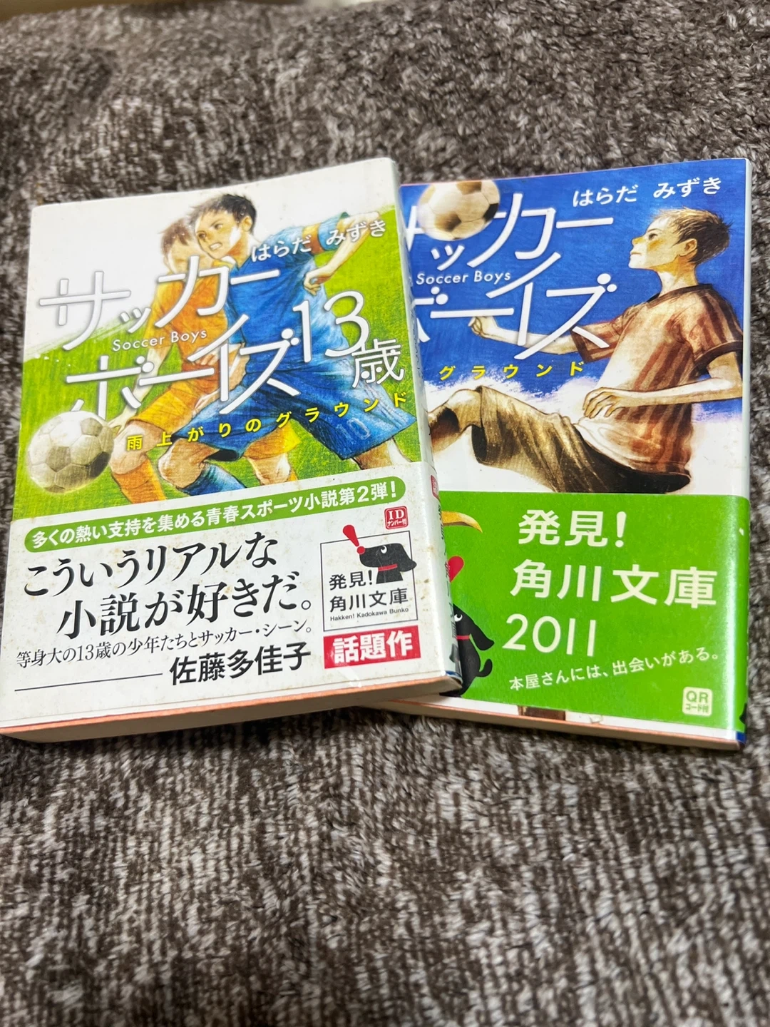 サッカーボーイズの文庫本2冊セットです 【情報】 タイトル:サッカーボーイズ 13歳 雨上がりのグラウンド タイトル:サッカーボーイズ 再会のグラウンド 出版社:角川文庫 【状態】 小さな傷、使用感あり 中古品であることご了承ください