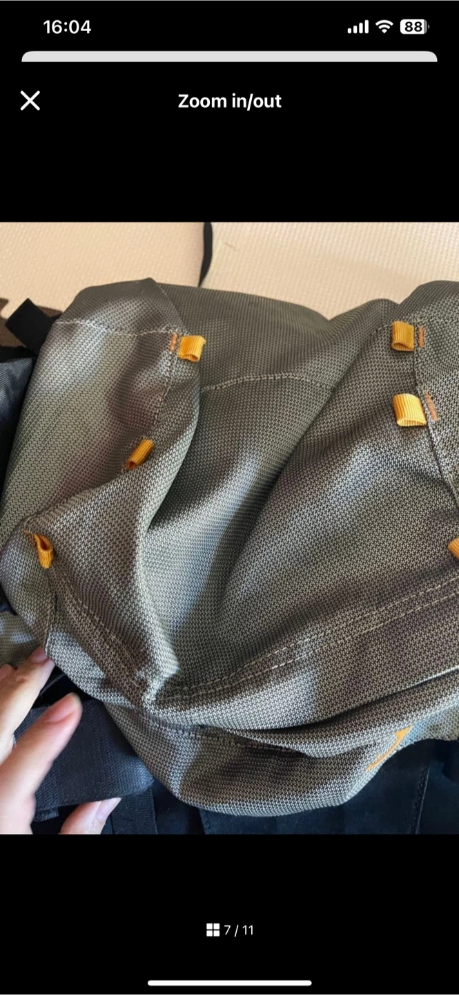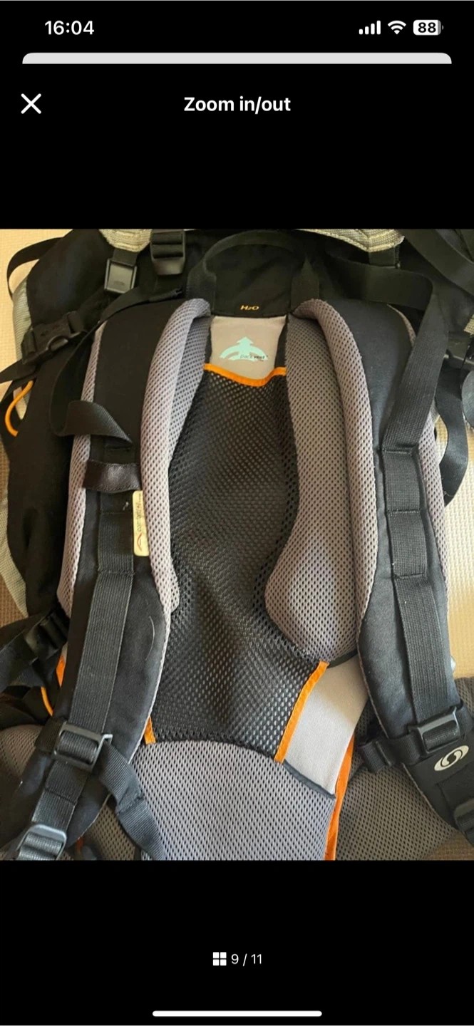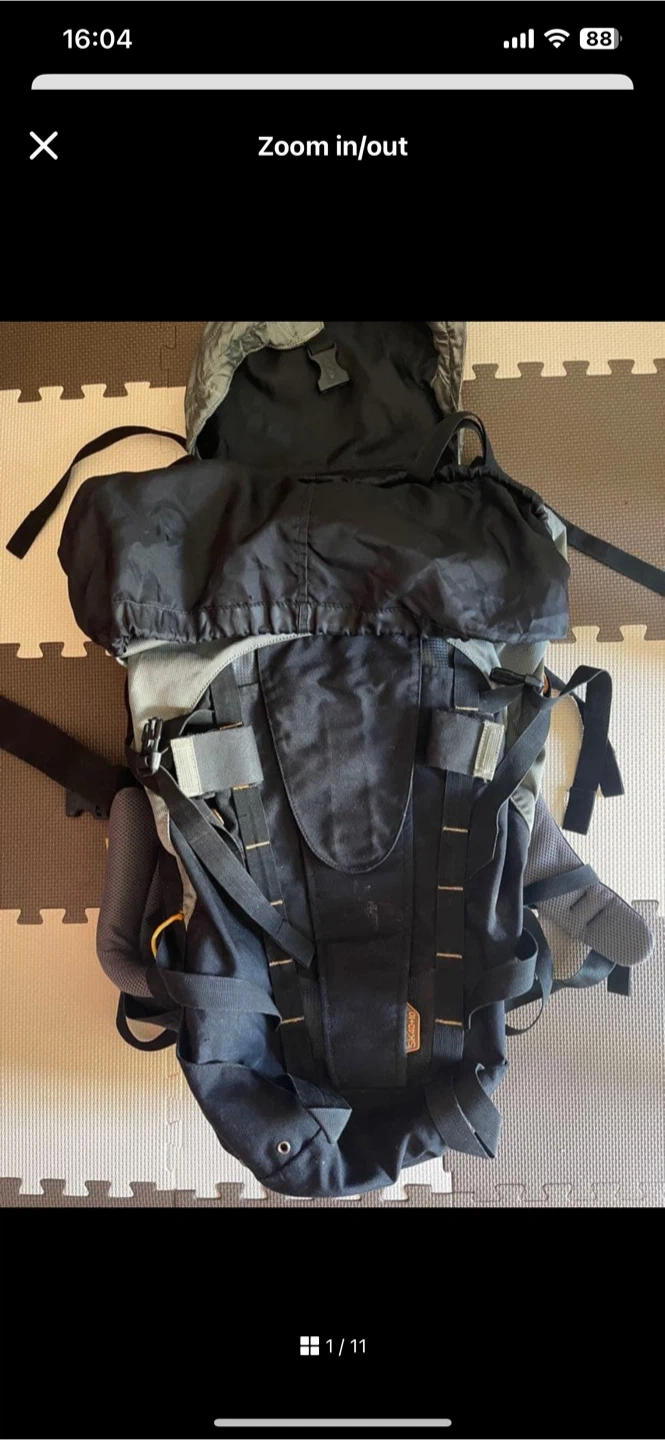 ご覧いただきありがとうございます。 Salomon H40 バックパックの中古品です。 【状態】 ・全体的に使用感があります。 ・生地に擦れや細かな汚れがあります(写真をご確認ください)。 ・上部のストラップ(フタを固定するベルト)が欠品しています。 ・側面にパイプなどの部品は元々なく、写真の黒いストラップのみの仕様です。 【機能面】 ・破れや大きな壊れはなく、まだ問題なくご使用いただけます。 【注意点】 ・中古品のため、細かな傷・汚れにご理解いただける方のみご購入ください。 【付属品】 本体のみ。 ご不明点があればお気軽にコメントください
