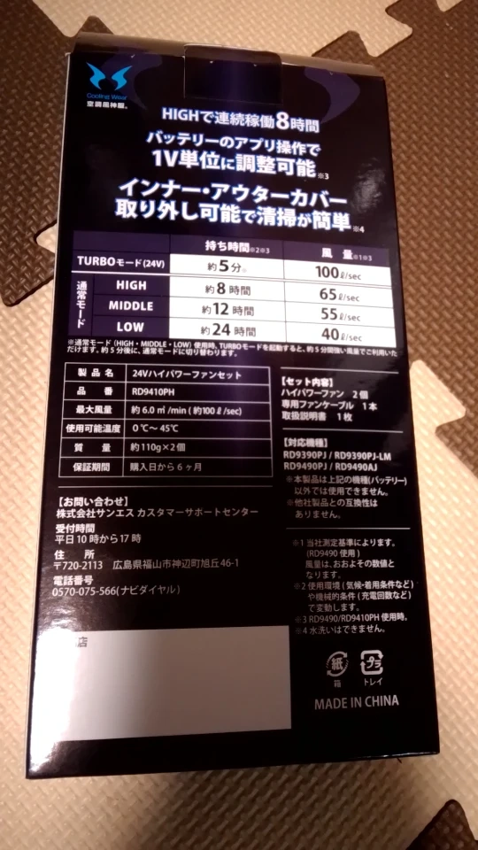 サンエス 空調風神服 24V ハイパワーファン RD9410PH