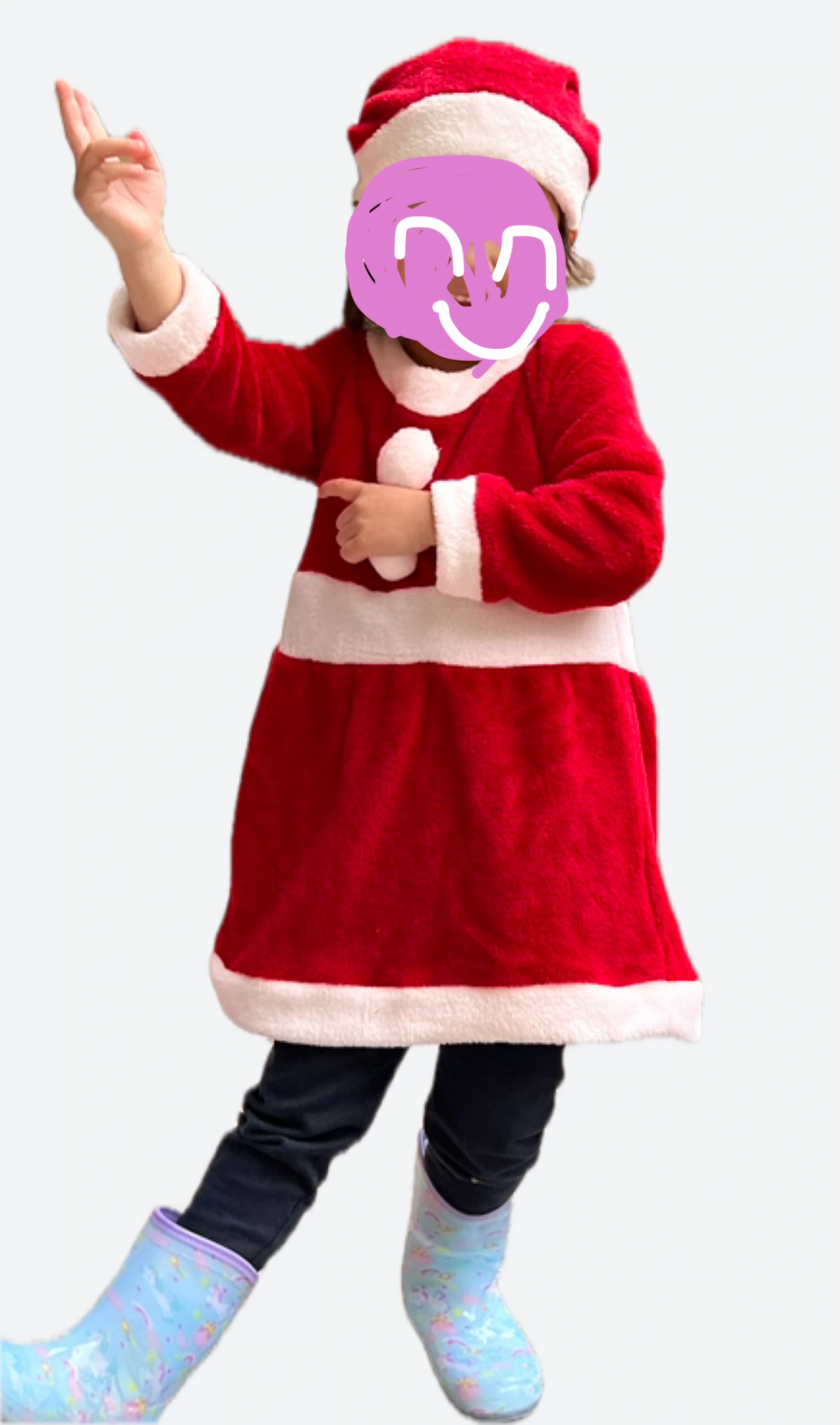 前に穴あり🕳️写真4枚目参照 サンタクロース風のベビー・キッズ用ワンピースです。 ・赤色 ・サイズ:110 ・ポリエステル100% ・多少の使用感あり 中古品であることをご了承ください。