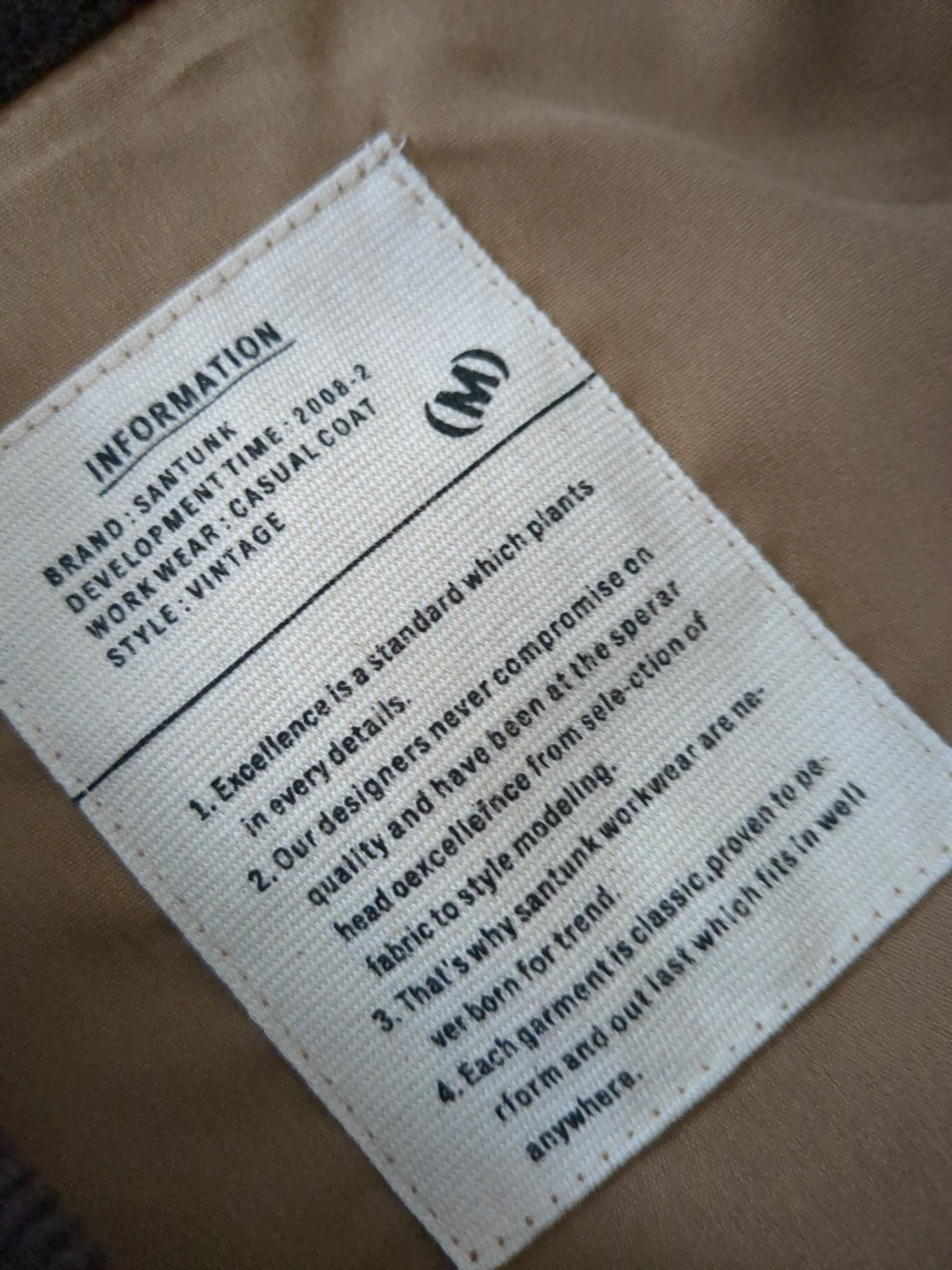 サントンクのワークウェア、カジュアルコートです。 【情報】 ブランド:サントンク サイズ:M スタイル:ヴィンテージ 【状態】 ネットで1万円で購入し試着しましたが生地が硬く…あえて糊つき?の生地なのか、、 断念しました。 シワ感は元からありました。 こちらにご理解のあるかた宜しくお願いします。 ご不明点があればお気軽にお尋ねください。