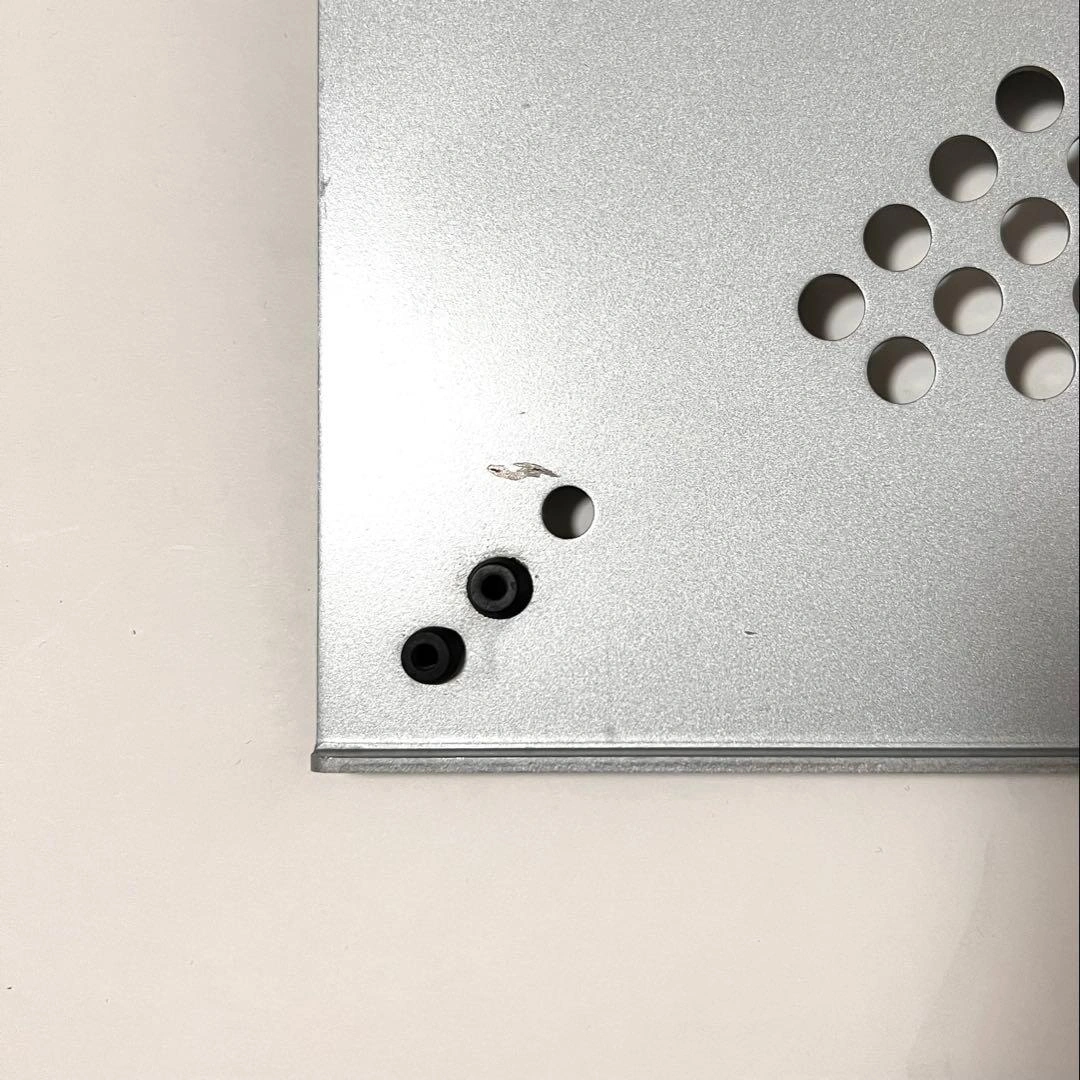 USB、ACアダプターどちらかで電源供給できます。 背面にUSBポートが4口あります。 16インチのMacBookで使用していましたが、左右が少しはみ出るサイズです。 ACアダプターは動作確認のため一度接続しました。 USBは経年で少し黄ばみがあります。 写真4のように本体左下に目立つ傷があります。 ご希望の方はお気軽にご連絡ください。