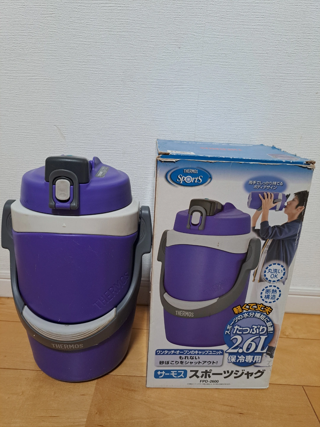 部活動で1年間夏に使用していました。練習や試合に持参していたのでスレがありますが、中はきれいです。飲み口、開閉口も傷等はありません。 猛暑で外の部活動で1日練習だとこのサイズが必要でしたが、引退すると不要になります。定価で購入すると5000円近いです。捨てるにはまだ問題もないので、出品しました。使い捨てのつもりで使用してくださる方におゆずりします。 中古品なので、完璧を求める方はご遠慮ください。 【情報】 ブランド:サーモス 容量:2.6L 種類:スポーツジャグ 色:紫、白、グレー 型番:FPG-2600 【状態】 中古品 【付属品】 箱