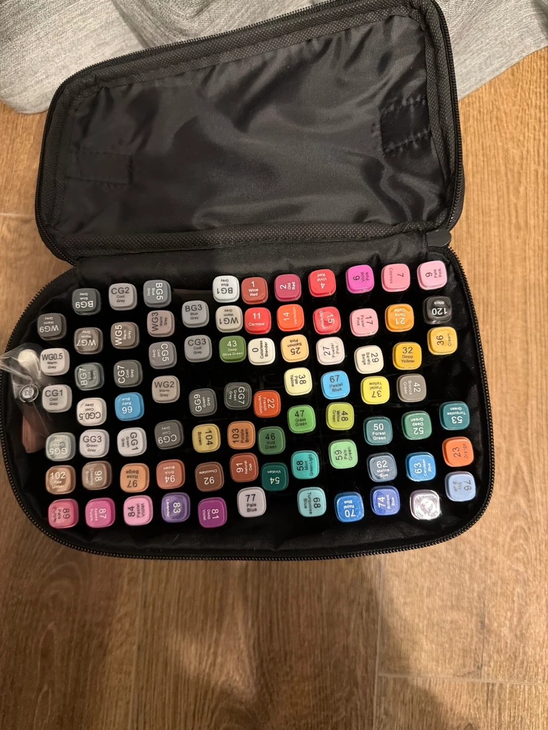マーカーペン80色セットです。 お子さんのお絵かきなどに最適です ・ブランド:THE PEN ・色数:80色 ・ケース付き ・使用感少なめ ・何本か欠品があります 中古品であることをご了承ください。