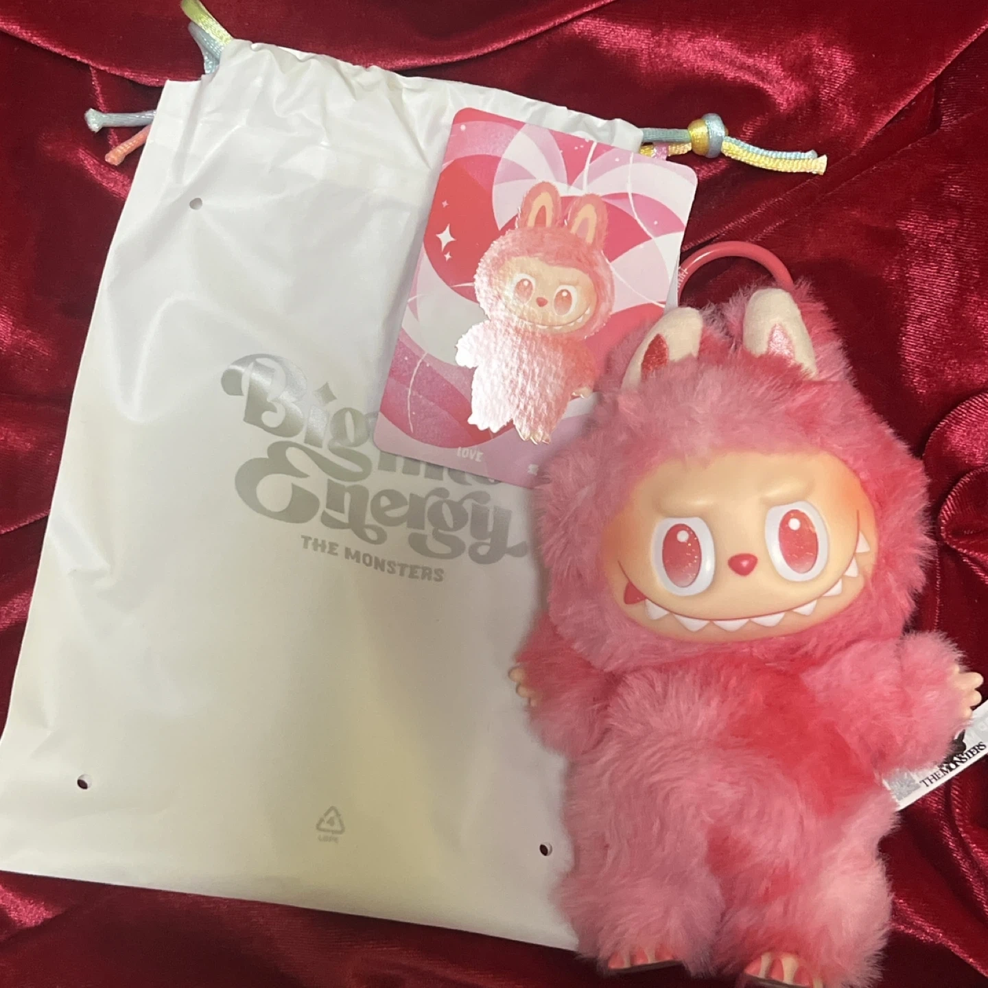 ザ・モンスターズのキャラクターグッズです。 ・赤色のぬいぐるみ(Love) ・袋とカードが付属 ・目立つ傷や汚れなし 正規品です。 原宿購入品 中古品であることご了承ください。