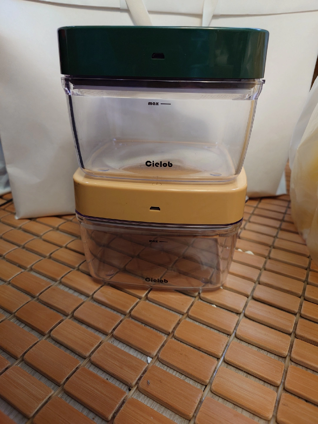 シエロブの真空保存容器2個セットです ・ブランド:シエロブ ・色:グリーン、ベージュ ・状態:使用感あります。 お菓子とか…乾燥係のつまみを主に保管してました。購入してから4年ほど…だと思います。 充電式です。作動問題ありません。 2個セットです。 中古品であることご了承ください