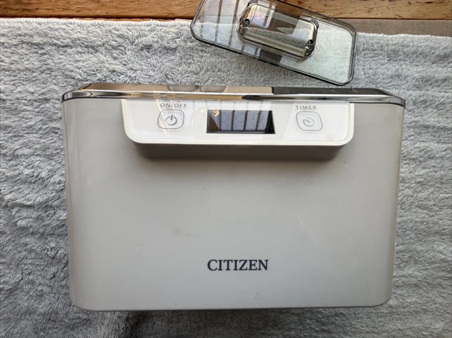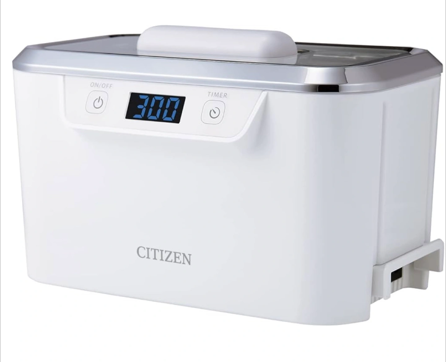 シチズン 超音波洗浄器 2つの振動子による超音波の振動で発生した見えない気泡が微細な隙間の汚れを粉砕、すっきり取り除く超音波洗浄器です。 汚れの度合いや洗浄頻度に応じ、60秒、120秒、180秒、240秒、300秒の5段階から選択できます。タッチパネルで簡単操作。 - ブランド: CITIZEN - 機能: 超音波洗浄機 - 素材: ステンレススチール - 操作ボタン: スイッチ、オン/オフ 【様々なもののミクロの汚れを洗浄】メガネ・貴金属・歯ブラシ・リテーナー・入れ歯・腕時計の金属バンド・電気カミソリ刃・万年筆のペン先、など色々なものに対応しています。 【2つの振動子で強力洗浄】汚れを粉砕する気泡(キャビテーション)を発生させる振動子が2つあるためより広範囲にキャビテーションが発生し 、幅の広いものでもらくらく洗浄できます。 【選べる5段階タイマー】汚れの度合いや洗浄頻度応じて5段階のタイマーが設定できます。 【大きな洗浄層】メガネなどの幅の広いものも入れることができます。 【便利な付属品】アクセサリー用の洗浄カゴ付きです。 使用回数は1回です。 近くなら配送も相談可能です。