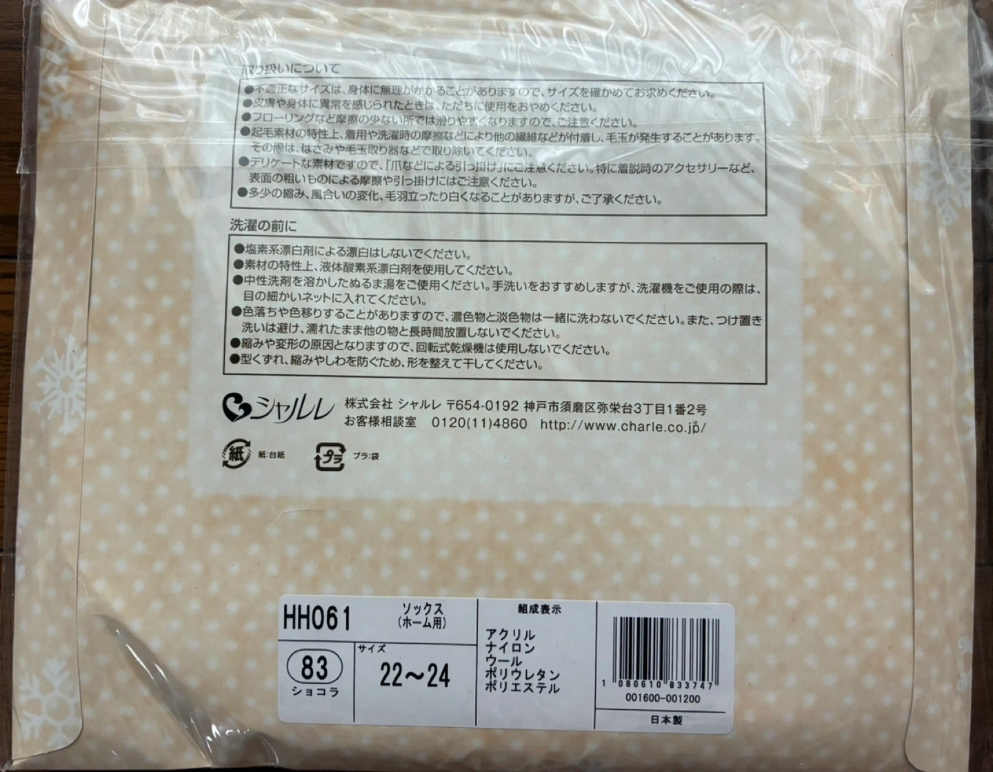 シャルレのホーム用ソックス2点です。 1点(1足)のみのご購入も(¥600)承ります。 【情報】 ブランド:シャルレ 種類:ソックス(ホーム用) 型番:HH061 サイズ:22〜24 色:ショコラ Xmasプレゼント🎁にいかがですか? 受渡し場所等、お気軽にご相談ください♪