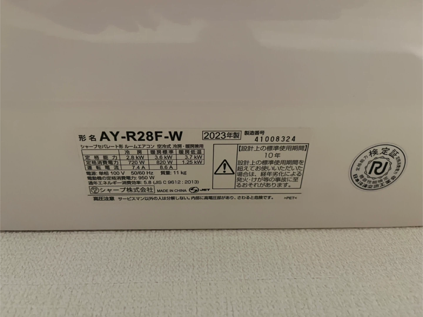 シャープのエアコン2023年製です。 10畳用で、定価で18万程度だったと記憶しています。 【情報】 ブランド:シャープ 型番:AY-R28F-W 年式:2023年製 定格能力:2.8kW 電源:100V 【状態】 使用感少なめで、2シーズンのみ使用しており、問題なく使用していただけるお品です。 リモコン等付属品ございます。 ご不明点があればお気軽にご連絡ください。 自宅に取りに来ていただける方のみよろしくお願いします。m(_ _)m