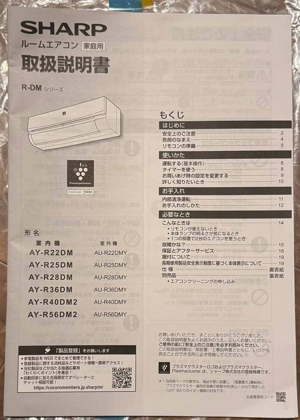 シャープ ルームエアコン 取扱説明書 R-DMシリーズ