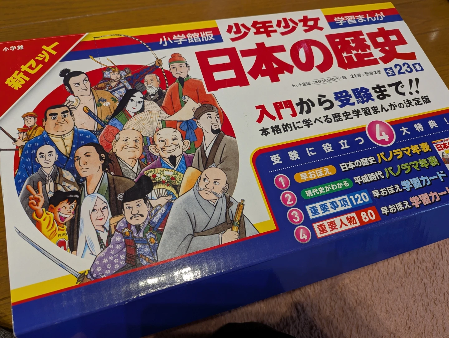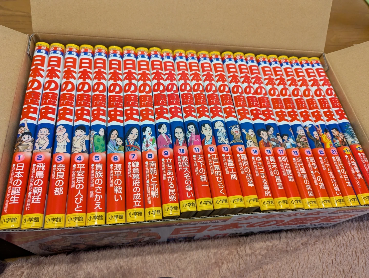 小学館の少年少女日本の歴史全23巻セットです 【情報】 ブランド:ショウガクカン(小学館) 商品名:少年少女日本の歴史 セット内容:全21巻+別巻2巻 全23巻 【状態】 全体的にきれいです。未使用の巻もあります。 箱付きですが、付録のカードや年表は紛失したためありません。23巻のみです。 1巻の表紙カバー上部に8ミリほどよれと汚れが点々とあります。写真3枚目 2巻からは、よれと汚れは少なく比較的美品です。写真最後 中古品であることご了承ください
