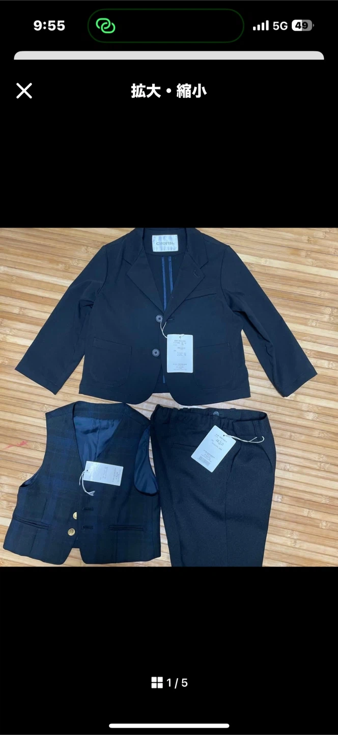 ショパンのキッズフォーマルスーツ3点セットです。 一回もきていません。 ・ブランド:ショパン ・ジャケット、ベスト、パンツのセット ・色:黒、ベストは紺色のチェック柄 ・状態:目立った傷や汚れなし ・入学式、卒園式、発表会などに 全くの新品ですが中古品であることをご了承ください。
